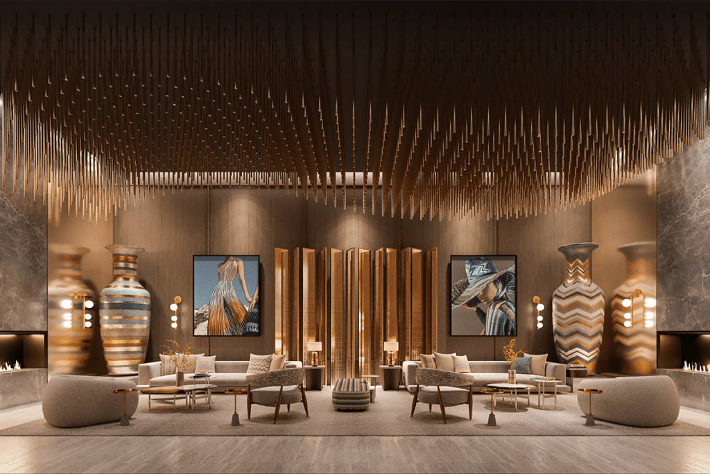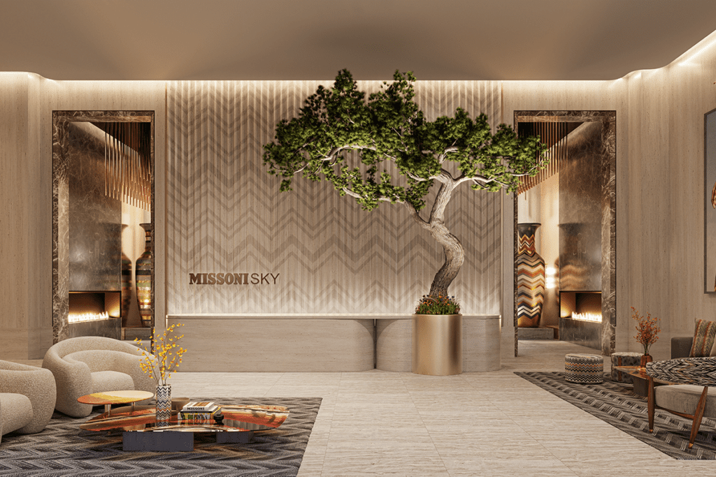 Diseñado en colaboración con el equipo de Missoni, bajo la dirección del director creativo Alberto Caliri, MISSONI SKY combina a la perfección la elegancia y el espíritu creativo de la distinguida casa de moda en toda la propiedad. Desde el gran vestíbulo hasta las suites privadas, los residentes experimentan una estética incomparable que equilibra la sofisticación moderna con la vitalidad característica de Missoni.