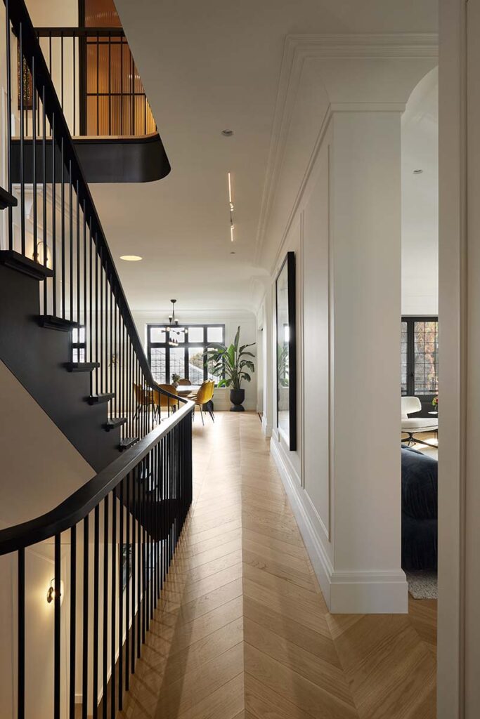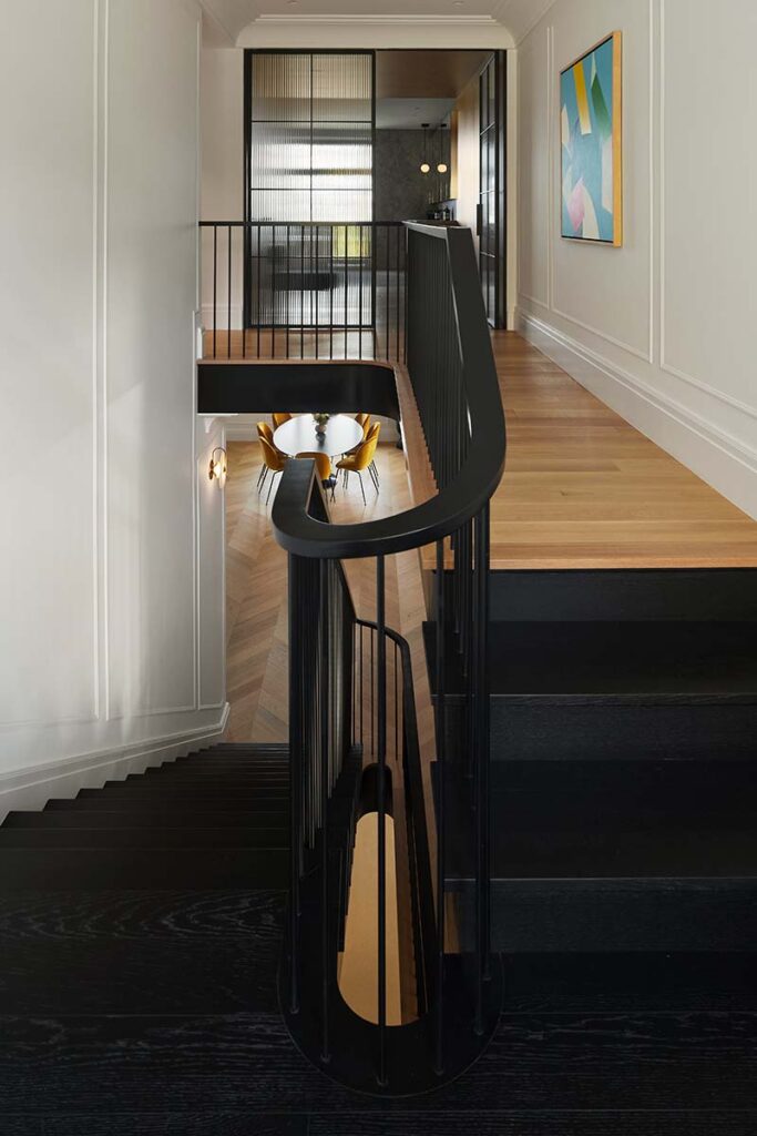 Esta transformación permitió que la escalera se convirtiera en una verdadera pieza central del diseño, añadiendo una dimensión extra a la residencia que ilustra perfectamente la visión de los propietarios de transformar una casa histórica en una residencia contemporánea.