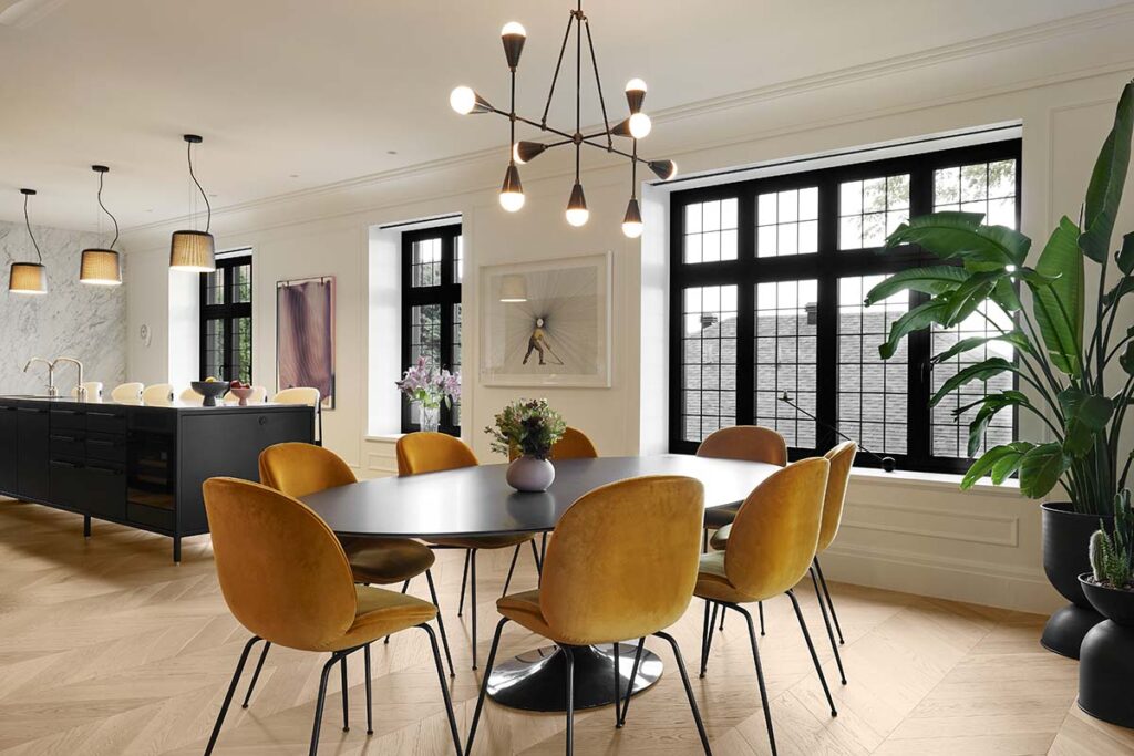 El objetivo era crear un espacio habitable vasto y fluido, abierto e inundado de luz natural. Este enfoque permitió remodelar la cocina a lo largo del patio, respetando el valor histórico de las ventanas originales. También permitió diseñar el comedor y la sala de estar en forma de «L», garantizando abundante luz desde la mañana hasta la noche.