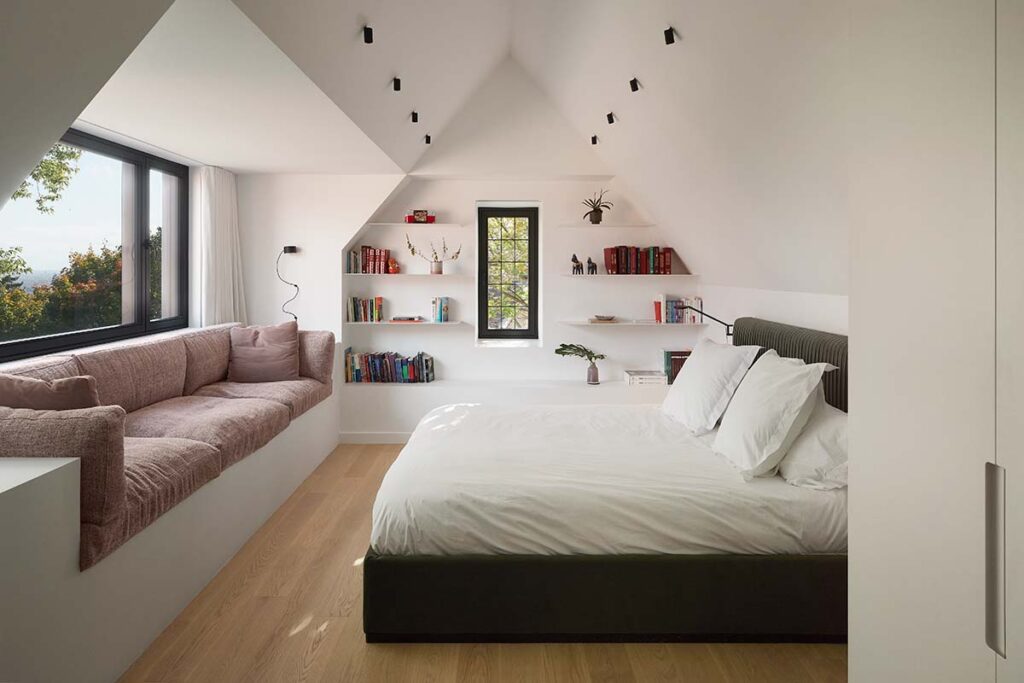 Para satisfacer las necesidades del cliente, el arquitecto acometió una reforma interior completa, eliminando todos los tabiques de la casa. Teniendo en cuenta la preservación del patrimonio, se replanteó cuidadosamente la composición de las ventanas originales en el lado sur del alzado trasero.