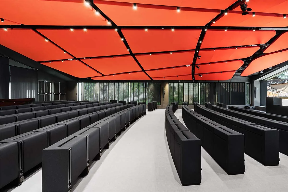 La firma Alvisi Kirimoto presenta The Dome, un nuevo centro rodeado de vegetación para el campus de la Universidad LUISS Guido Carli. Este anfiteatro diseñado en colaboración con Studio Gemma, cerca de Villa Ada, está ubicado en el corazón del distrito Parioli de Roma (Italia). La intervención, que completa los espacios universitarios y potencia las zonas verdes circundantes, ha supuesto la demolición de una nave existente, sujeta a limitaciones paisajísticas, la construcción desde cero y la ampliación de un edificio educativo. El polo, desarrollado en dos niveles y con una superficie total de 1.500m², se posiciona en el punto más accesible y pintoresco del paisaje del complejo, cerca de una pequeña zona boscosa al sur del lote, en la última prolongación del parque y de la plaza principal del campus. El diseño del anfiteatro El proyecto nace de la idea de elevar el volumen para conectarlo directamente con las copas de los árboles, liberando al máximo la planta baja. Esta alberga la entrada, un aula y las áreas de servicio, mientras que la planta alta alberga un anfiteatro y dos aulas. Rodeado de vegetación y con una piel permeable y transparente, el edificio parece disolverse en el paisaje, evocando la clásica casa en el árbol de la que deriva su silueta, pero también la dimensión acogedora, casi «hogareña», de sus espacios, diseñados a medida para los estudiantes. Los interiores se han diseñado para garantizar una mayor versatilidad y albergar diversas actividades educativas, así como eventos culturales, artísticos y sociales, como conferencias, veladas de gala y proyecciones de cine. El anfiteatro, diseñado para múltiples usos, y las aulas, diseñadas para redefinir el equilibrio entre la enseñanza presencial y el aprendizaje a distancia, están equipados con sofisticados sistemas de videoconferencia que se integran perfectamente en la arquitectura. Una escalera transversal conecta los dos niveles internamente mediante un espacio de doble altura, mientras que una tercera escalera conecta la primera planta con el exterior. La planta baja, visiblemente retranqueada, realza aún más la ligereza del volumen superior y crea un espacio abierto y cubierto a la vez, equipado para cursos y actividades al aire libre. Revestida de lamas de madera natural y vidrio, la planta superior proyecta el edificio hacia las copas de los árboles, creando un diálogo privilegiado entre arquitectura y contexto, y ofreciendo una sección transversal dinámica de las actividades que tienen lugar en su interior. «El vínculo indisoluble entre la estructura y la vegetación circundante señala un enfoque educativo innovador que, para fomentar el aprendizaje, se centra en el bienestar que genera la relación con la naturaleza», explica el arquitecto Massimo Alvisi, cofundador del estudio. «La alta permeabilidad que caracteriza la piel del edificio no solo facilita la inmersión en el paisaje y fomenta el intercambio entre toda la comunidad estudiantil, sino que también es una elección conceptual que refleja la apertura del campus». Los colores, texturas y materiales del proyecto se eligieron con la misma sensibilidad: las tonalidades del revestimiento metálico y el yeso rayado se combinan con la calidez de la madera en un equilibrado juego de referencias y contrastes. Inspirado en principios de diseño sostenible y construido con materiales naturales, el edificio ha obtenido la prestigiosa certificación LEED Platino. Los paneles acústicos suspendidos que definen el falso techo del anfiteatro, de color rojo coral, captan la atención desde el exterior, mientras que su silueta orgánica refuerza el diálogo con la arboleda adyacente. El mismo rojo impactante caracteriza el mobiliario y algunos elementos de las aulas, un detalle refinado que proporciona a todo el complejo una gran coherencia visual, especialmente cuando el edificio cobra vida al atardecer. Los espacios exteriores se han rediseñado con suelo de grava estabilizada, mientras que un sendero en terraza, protegido por la sombra de una hilera de encinas, conecta la arboleda con la plaza. Todas las zonas exteriores se han equipado y diseñado para fomentar el estudio, las reuniones informales, la relajación y el juego, ofreciendo infinitas posibilidades de convivencia y una gran flexibilidad de uso. Similar a un enorme telescopio que se proyecta sobre la vegetación y vigila la plaza de abajo, el proyecto de Alvisi Kirimoto se ha convertido en el nuevo punto focal de la vida en el campus universitario.