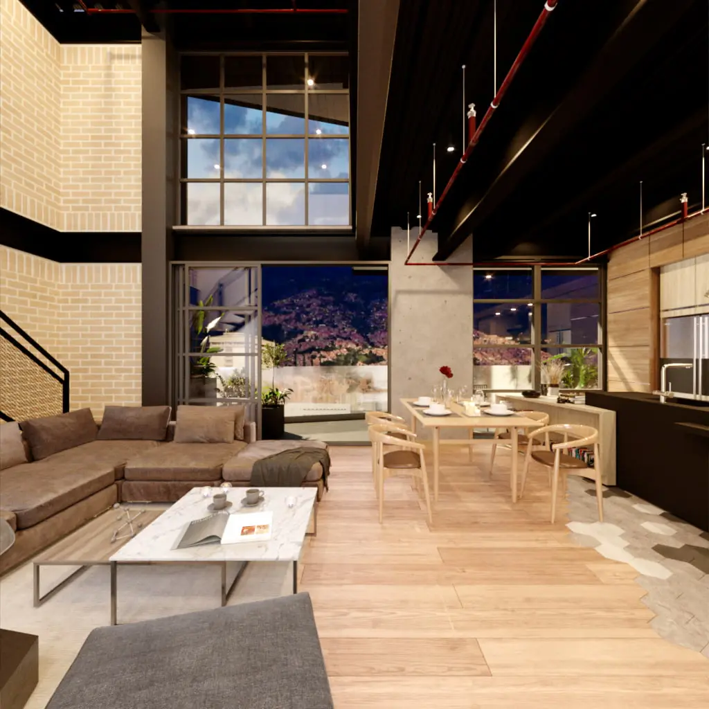El proyecto está compuesto por ocho lofts de 65 metros cuadrados más terrazas y dos dúplex de 119.35 más terrazas. Sus diseños están inspirados en Nueva York, con un espacio principal abierto del que únicamente se independizan el vestier y el baño por su carácter privado. Por su parte, los dúplex ofrecen un confort adicional al tener una segunda planta en la que queda la habitación principal. Asimismo, ofrecen la posibilidad de generar una alcoba adicional en el primer nivel donde está planteado un ambiente múltiple. Por otra parte, tiene fácil acceso al Sistema Integrado de Transporte Masivo del Valle de Aburrá, para así enlazarse con toda el área metropolitana. Además, lo circundan varias rutas de transporte urbano.