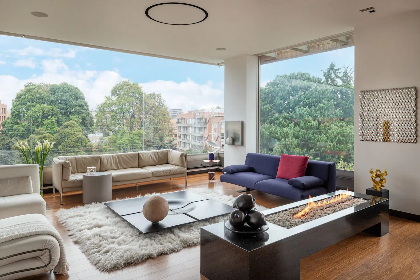 Un cálido apartamento bogotano con grandes ventanales que inundan de luz natural el interior