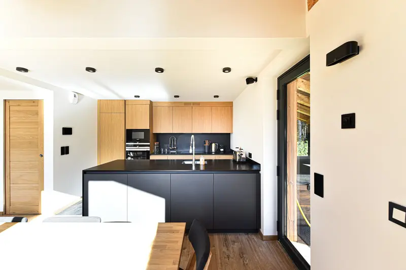 Los chalets se construyeron sobre la base de un armazón de hormigón, vestido de madera y metal, permitiendo integrar las respuestas a las limitaciones sísmicas. Esta mezcla de materiales realza el diseño de este proyecto con sus acabados de alta gama. Para el arquitecto, «Belles Échappées» ofrece un proyecto singular con un estilo muy personal.