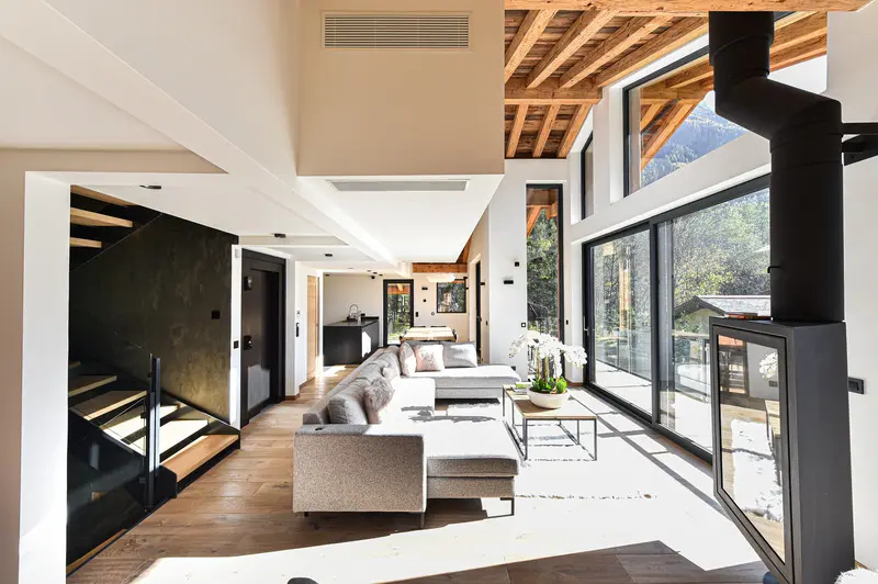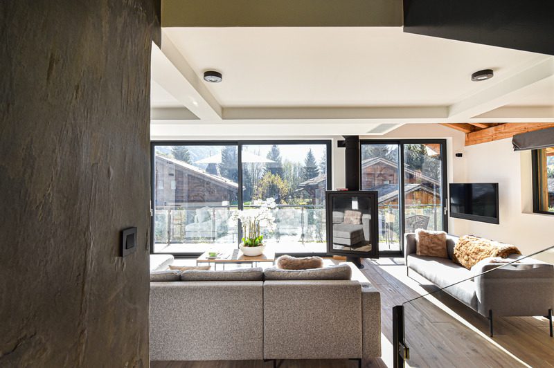 El cliente, que ya ha realizado otros proyectos con la agencia, quería una propuesta contemporánea, inédita y llamativa. Pidió una firma fuerte y pura del estilo arquitectónico de la Agencia. Y así, los quioscos en los tejados, estos volúmenes abiertos arrancados del espacio acordado, nacen y dan al master-dormitorio una vista espectacular sobre la cadena del Monte Blanco, una escapada luminosa.