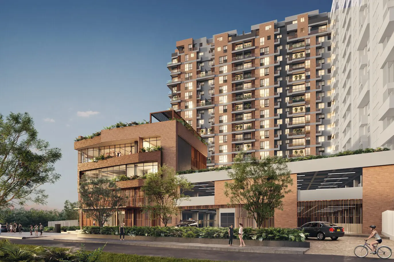 El proyecto cuenta con cuatro ascensores y tres niveles de parqueaderos, que funcionan como basamento de la estructura hacia las vías y proyectos aledaños. Este desarrollo inmobiliario de Constructora Bolívar ofrece diversas tipologías de vivienda con dos o tres habitaciones, según las necesidades de cada persona. Los apartamentos van desde los 62 metros cuadrados hasta los 167 –estos últimos son los penthouses dúplex–, distribuidos con las más recientes tendencias, como cocina abierta, depósito, área de servicio independiente y balcones.