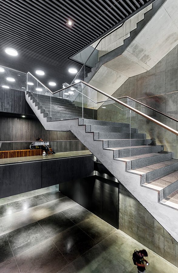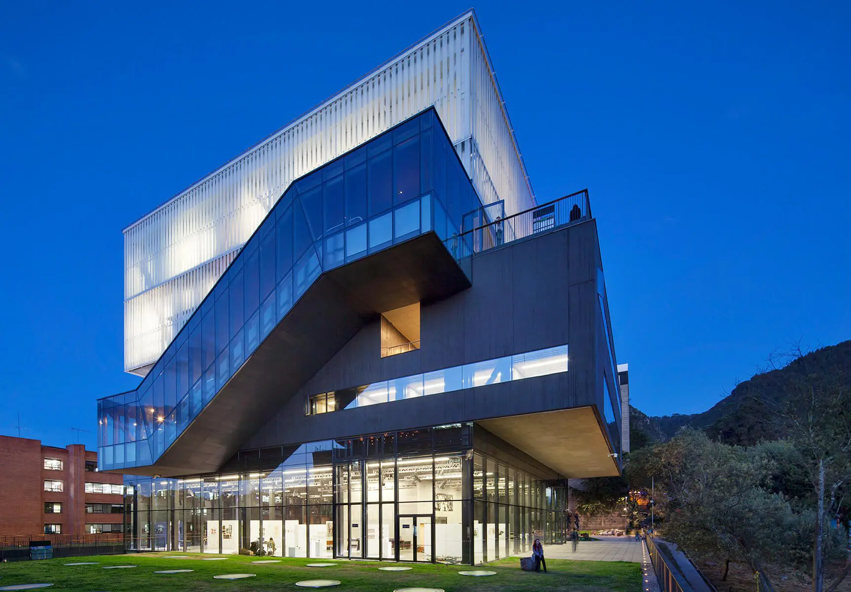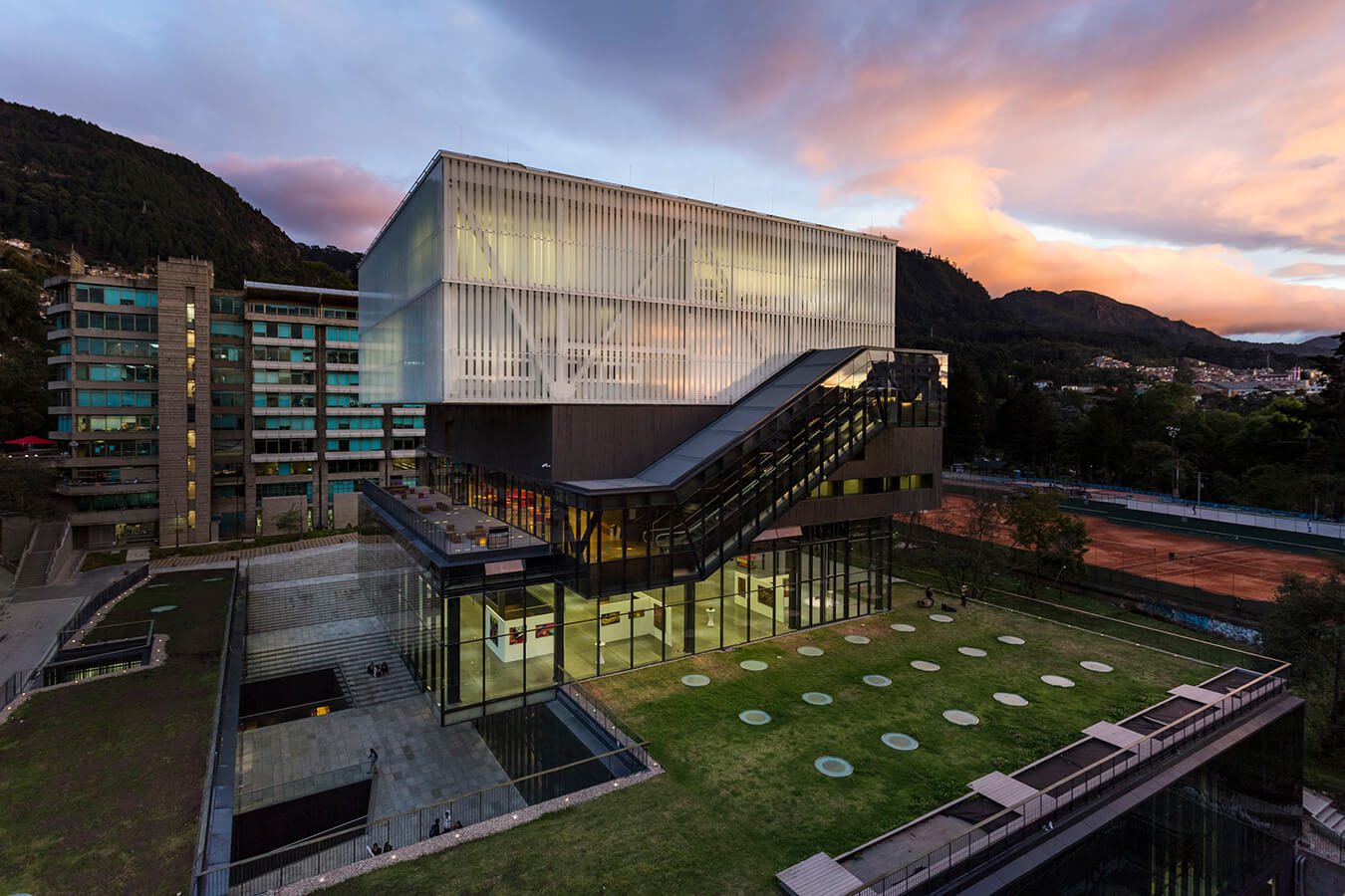 El primero se refiere a su implantación urbana: haciendo parte de una institución técnicamente privada –la universidad–, el edificio le apuesta a abrirse hacia lo público, a incorporarse a la ciudad, a “abrir para unir”, según describe su estrategia el arquitecto Ricardo La Rotta, autor de este diseño. Con este ejercicio, totalmente opuesto al que se suele hacer en la mayoría de los proyectos actuales en el país, la propuesta expone la Universidad Javeriana al parque, a la ciudad, recogiendo la importancia del Parque Nacional, su representatividad histórica y su carácter de lugar de reunión de escala metropolitana. La generosidad en su arquitectura rescata el lindero norte de uno de los espacios más representativos de la ciudad de una condición de aislamiento, de inseguridad y olvido, buscando recobrar el sentido de pertenencia, ensalzarlo y recalificarlo, y consolidar su función dentro de lo público, vinculado estrechamente a una institución privada.