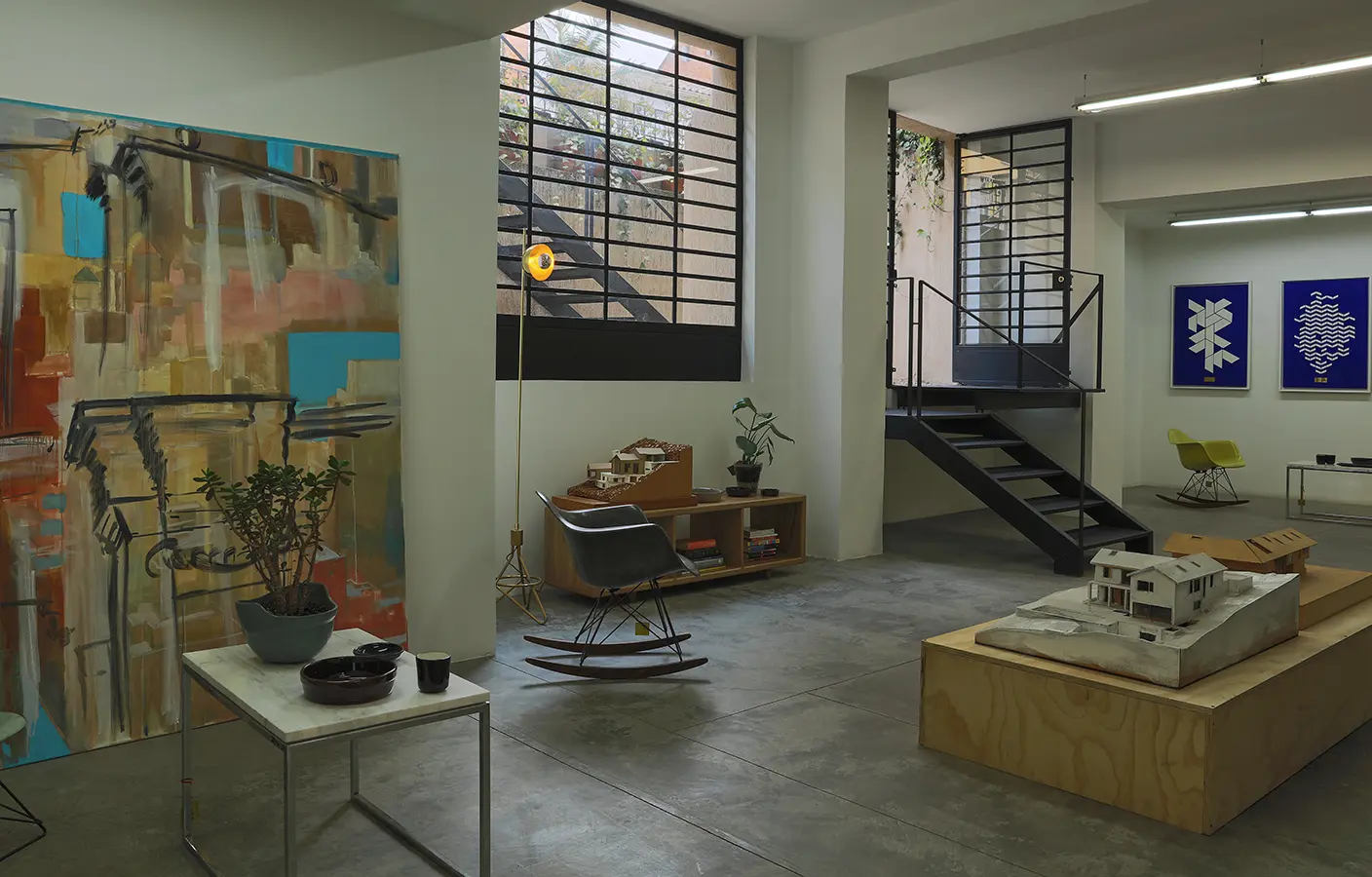El lugar, renovado por el arquitecto Juan David Pereira, es compartido con la firma de arquitectura de Ojeda, LAUD (Laboratory For Architecture And Urban Design). “Aquí quedaba una antigua imprenta, que desapareció. El edificio fue hecho a la medida para el anterior propietario, que tenía su taller en el primer piso (donde está la galería) y vivía en el segundo”. El ladrillo a la vista, los muros blancos y la generosa altura crean un ambiente ideal para exhibir objetos de diseño y realizar eventos como el Salón Errante, donde diversos diseñadores nacionales se congregaron el pasado febrero para mostrar sus propuestas.