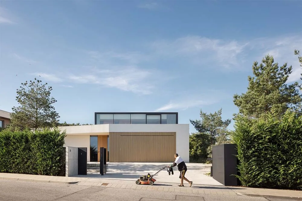 Para preservar la privacidad, la firma BEEF ARCHITEKTI diseñó una vivienda con una envolvente que actúa como escudo protector.