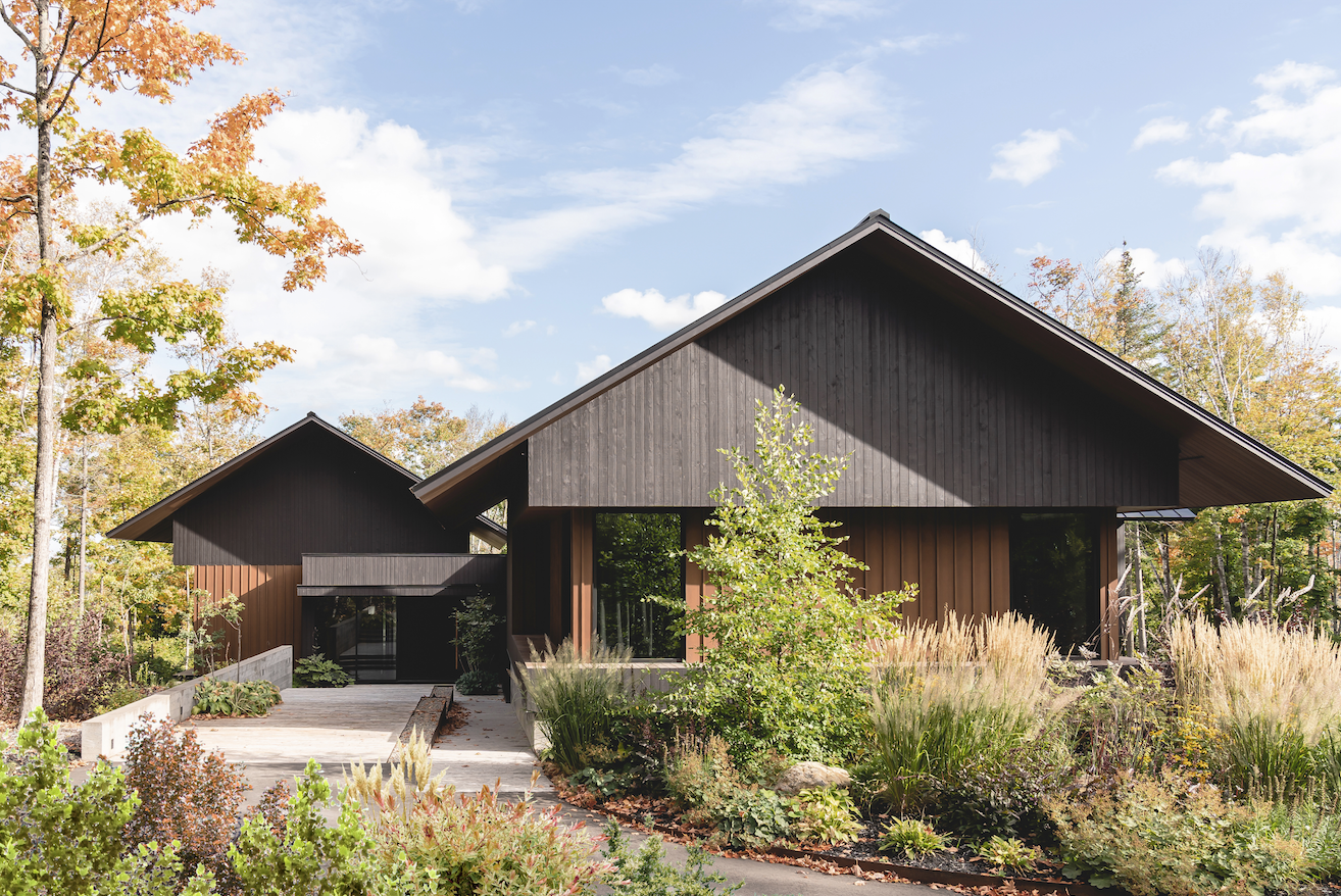 Esta increíble casa forma parte de una promoción inmobiliaria en las cercanías de la ciudad de Saint-Sauveur en las Laurentides. Esta zona se encuentra en el segundo anillo de comunidades periféricas de Montreal, donde los ocupantes han elegido asentarse para combinar un estilo de vida en un entorno natural (en las montañas) con las comodidades de una pequeña ciudad regional.