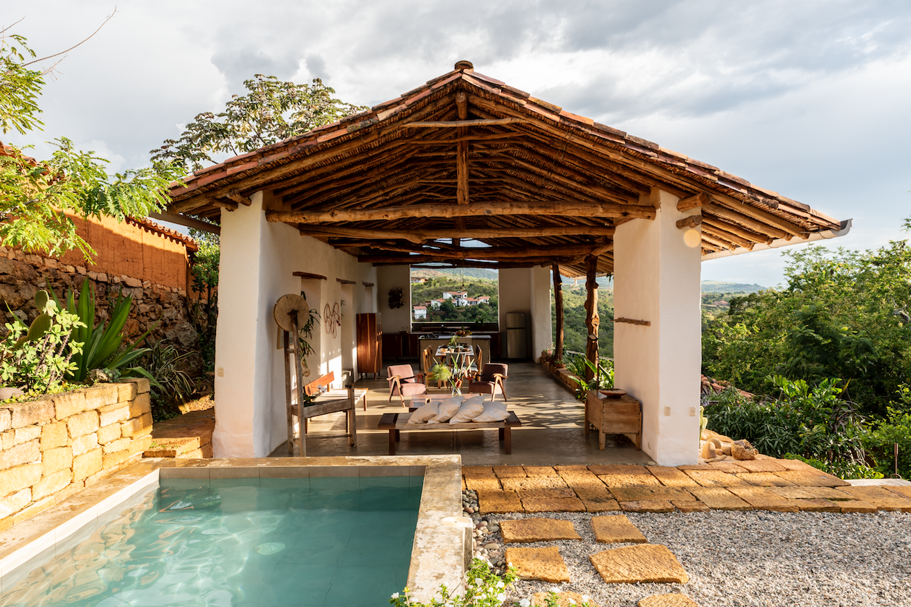 Una casa en Barichara que está hecha con las manos, maderas y rocas de la región