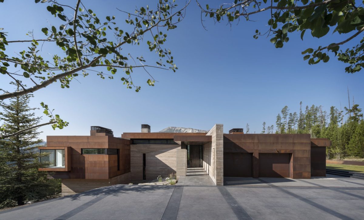 Implantada en la ladera de una montaña en Montana’s Madison Range –Estados Unidos–, la masa y los materiales de esta casa entablan una relación directa con el poderoso paisaje. El exterior de la vivienda es una composición de acero corten y hormigón –en forma de placas–, que abrazan metafórica y directamente su entorno natural inmediato.