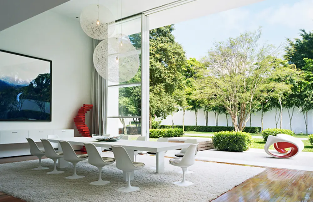 “El modernismo es una parte significativa del legado arquitectónico de Brasil”, explica Kogan, quien hace un guiño a los titanes del diseño de su país –Niemeyer, Costa, Artigas, Reidy y Bardi– cuando habla de su inspiración y de los principios que guían su oficio. “La generación de 1950 y 1960 nos planteó el reto de darle continuidad a su trabajo, pero siempre debemos aplicar conceptos y materiales contemporáneos”, agrega. Para comprobarlo, se detecta la sinuosa sensualidad que caracteriza el modernismo brasilero, el regionalismo vernacular que surgió y evolucionó del rigor europeo de Le Corbusier y Gropius.