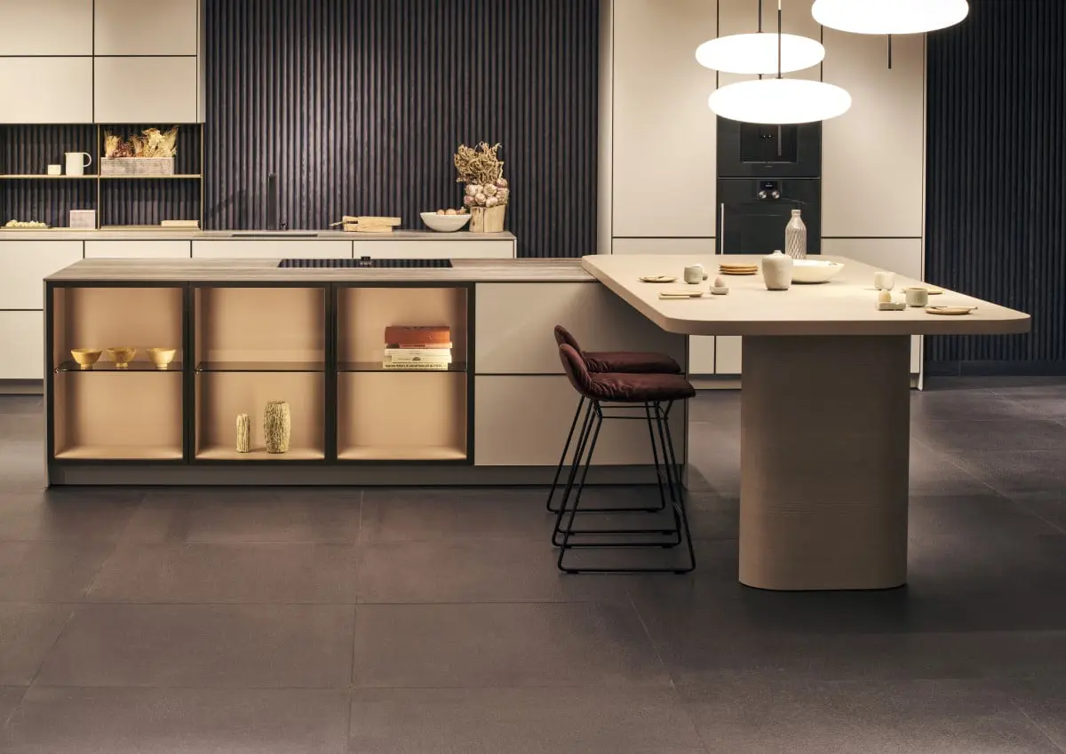 Esta cocina, de la multinacional alemana Poggenpohl, representada en Colombia por la compañía Productos Arquitectónicos, tiene una isla que evidencia la calidad de una mano de obra experta. Asimismo, su sistema de estanterías y armarios transmite transparencia y ligereza a un ambiente que, por ser funcional, no tiene que dejar de ser elegante e impactante.