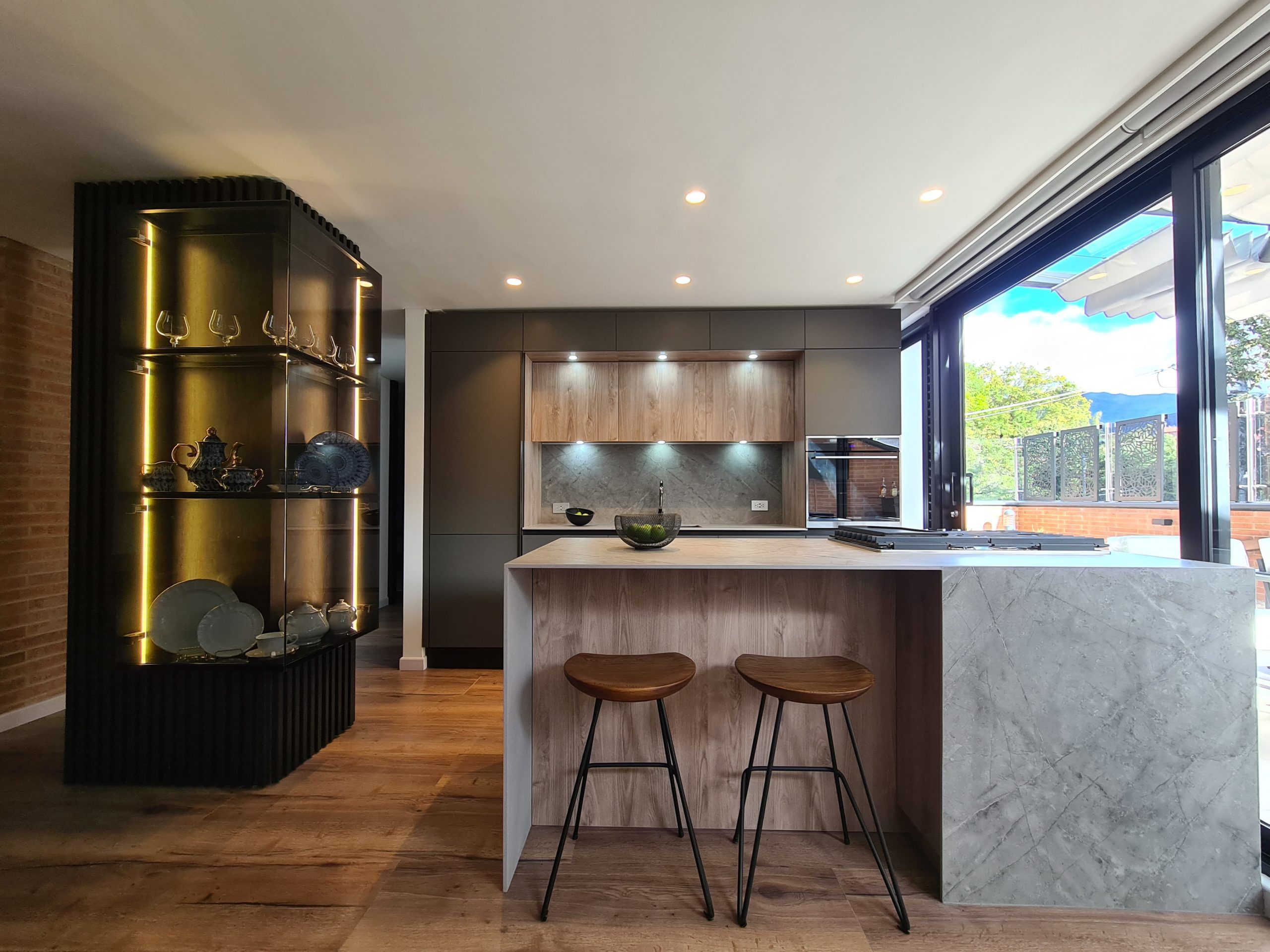 Una cocina colombiana de interiorismo elegante con un toque natural