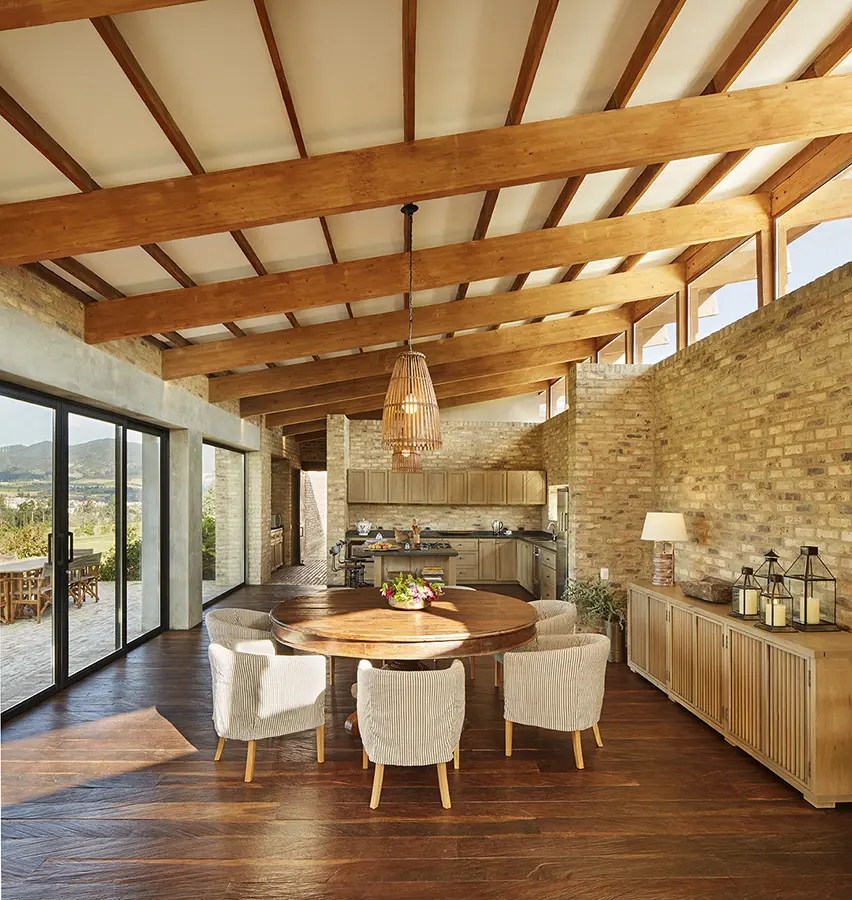 A partir de un diseño sencillo y lineal, amable con su entorno y utilizando materiales fácilmente identificables con el contexto local, esta casa (de alrededor de 600 metros cuadrados) se inserta en un ambiente privilegiado, rodeada del verde intenso de la sabana de Bogotá. “Planteamos una arquitectura tranquila, respetuosa y sobria, donde el paisaje es protagonista”, comenta el arquitecto David Restrepo, quien junto con el arquitecto Alejandro Vélez fue el encargado del diseño arquitectónico y la construcción de esta vivienda.
