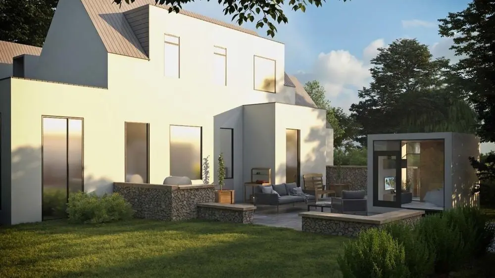 La propuesta es una solución asequible que agrega espacio personalizado al hogar. La caja auxiliar se puede usar para un estudio, gimnasio de yoga, santuario de escritura, estudio de arte, habitación de invitados, área de juegos para niños y / u oficina en el hogar. Esta caja proporciona acceso y proximidad a un espacio adicional, lo suficientemente cerca para omitir un viaje diario a otro lugar, pero lo suficientemente separado como para permitir la tranquilidad y el enfoque. Seeber y Sheck establecieron la caja auxiliar en base a su firme creencia de que un espacio útil y arquitectónicamente bello es primordial para el éxito de las actividades de las personas.