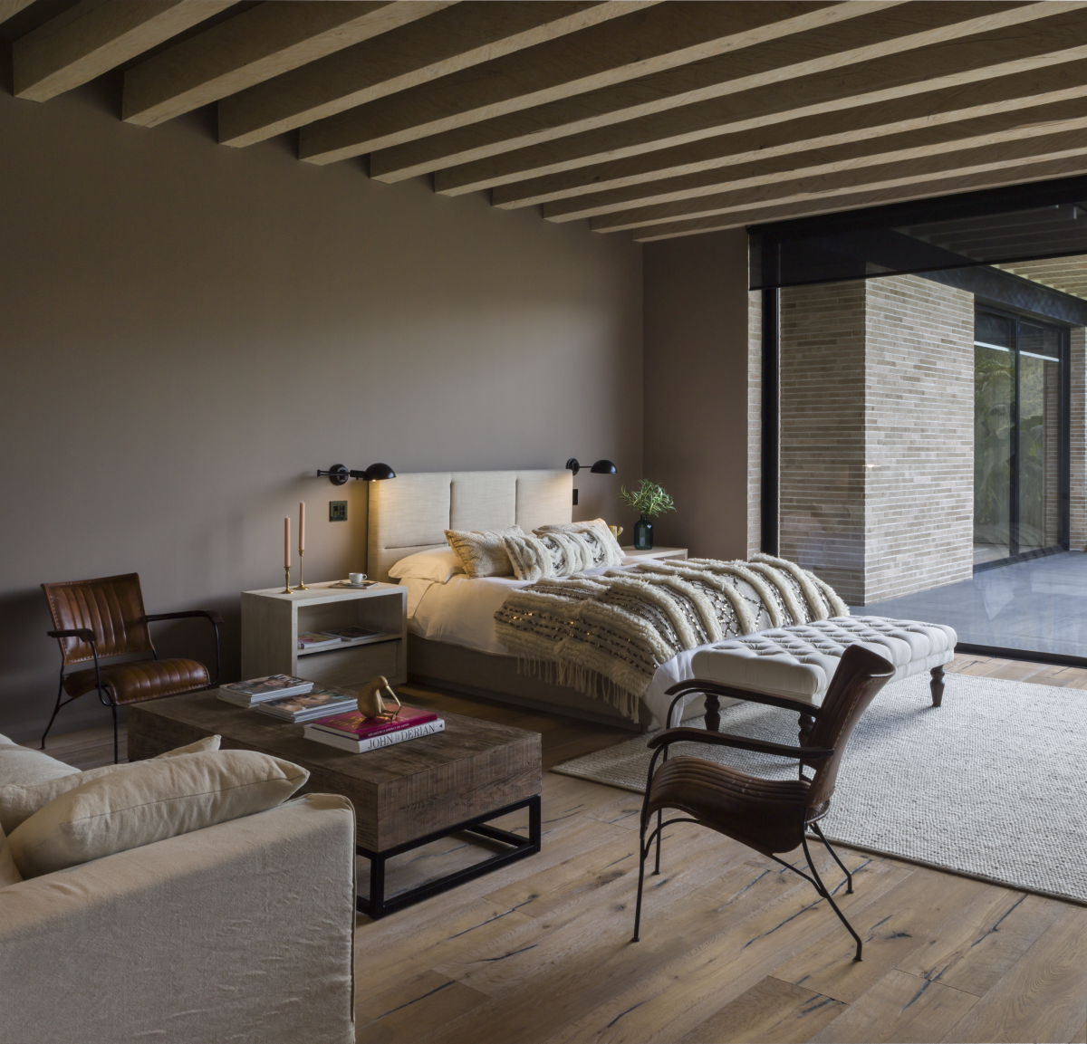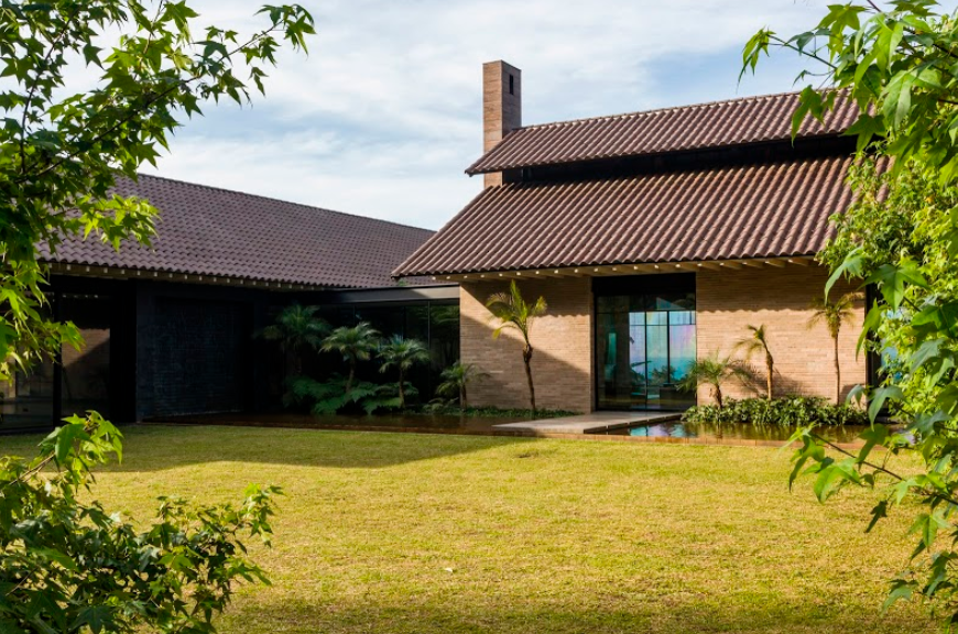 La idea de promenade –caminata o paseo– propia de la arquitectura moderna del siglo XX es el hilo conductor de las vivencias en esta residencia. La casa asume formas vernáculas, pero las combina con principios modernos. Se construye con los materiales que están a la mano, pero se les dispone de manera tecnificada y sofisticada. El ladrillo a la vista de gran formato, la madera expuesta en las estructuras de la cubierta y el vidrio de las fachadas coexisten en un collage