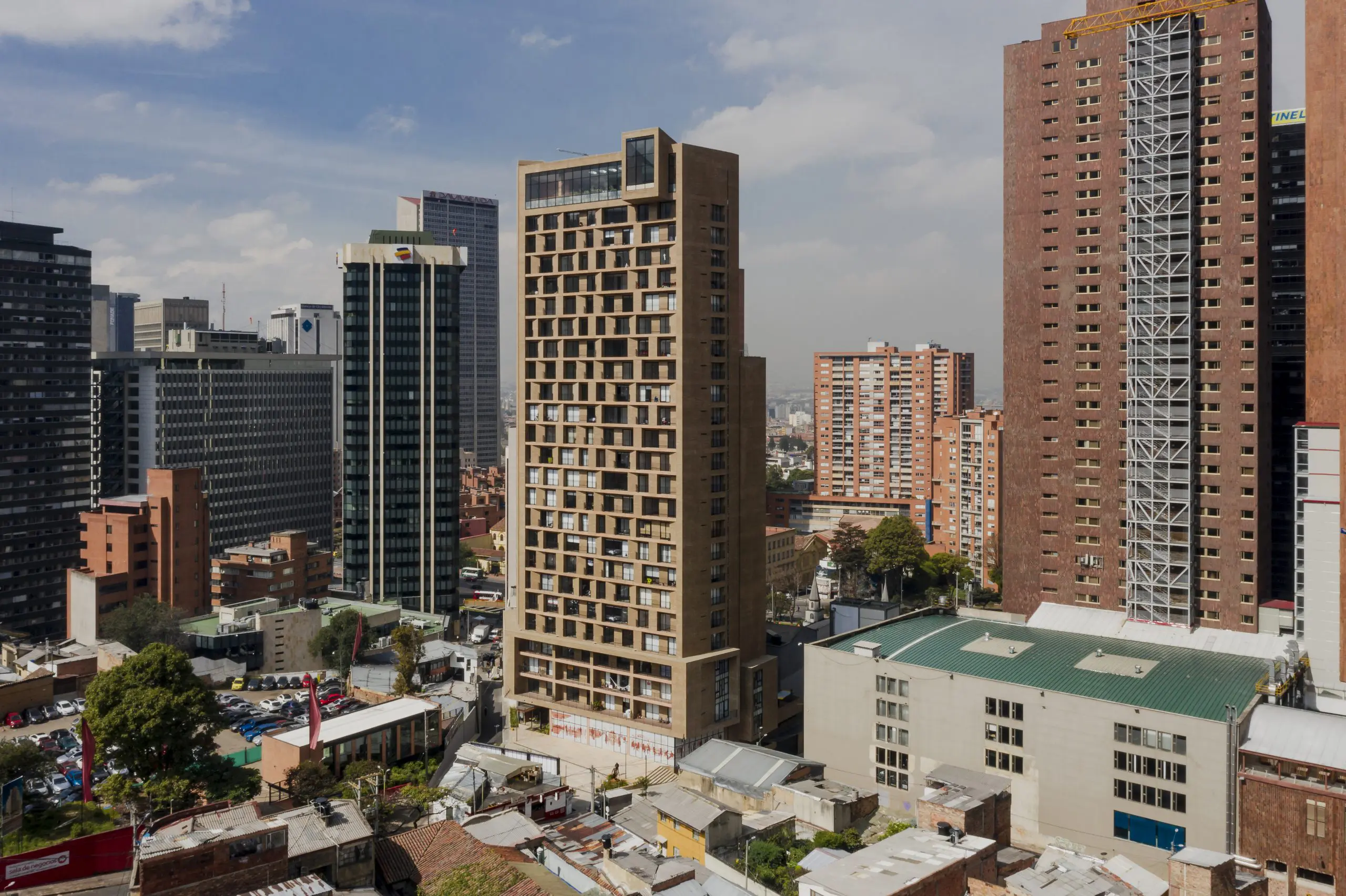 “Este edificio es el resultado de una norma curiosa que cobija al Centro Internacional de Bogotá y que se ha mantenido en el tiempo. Es muy generosa en términos de lo que se puede construir, pero requiere dejar libre el 50 % del lote y que las edificaciones se reduzcan progresivamente en altura”, explica el arquitecto Daniel Bonilla, quien con su Taller de Arquitectura de Bogotá –TAB– diseñó Equilibrium.