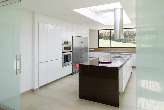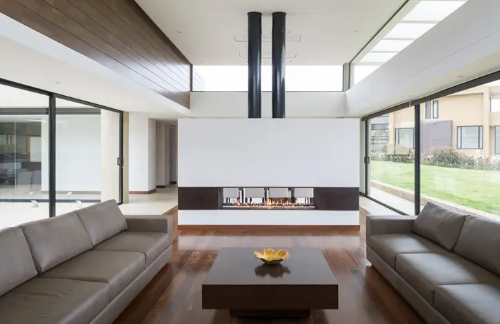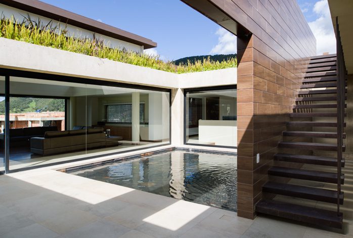 Las ventanas altas ofrecen un juego de vistas al que se suman el jardín interior y el patio, que tiene un espejo de agua y que conduce a una cubierta con vista de 360 grados.