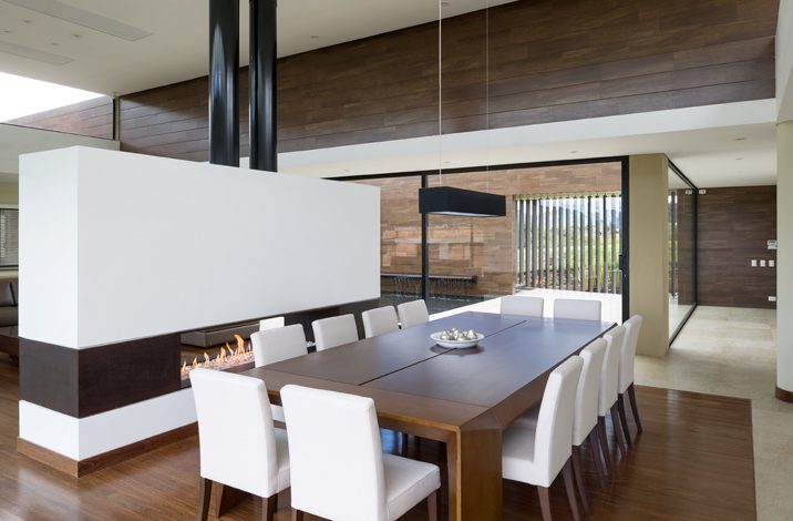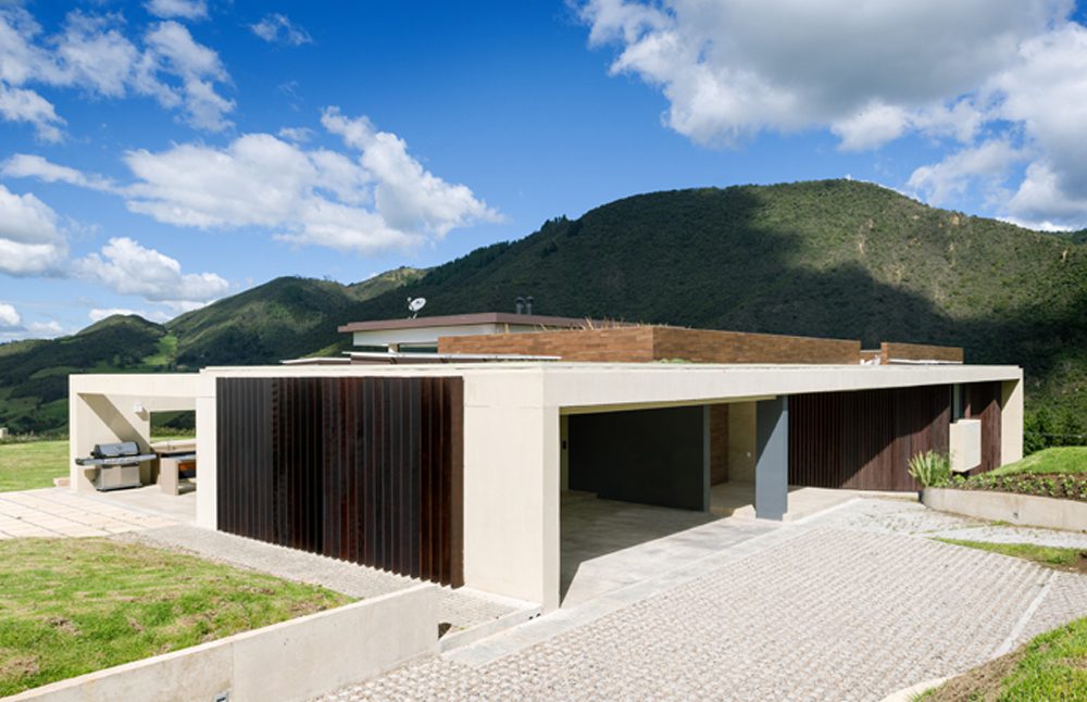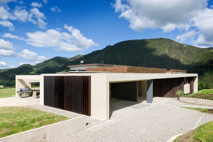 Compuesto por un basamento de concreto con un cubo en voladizo, el volumen muestra su sencillez desde su fachada. Materiales como un porcelanato color madera y el acero oxidado de sus celosías verticales lo protegen de los vientos predominantes y son la carta de presentación de esta vivienda. Una propuesta sobria.