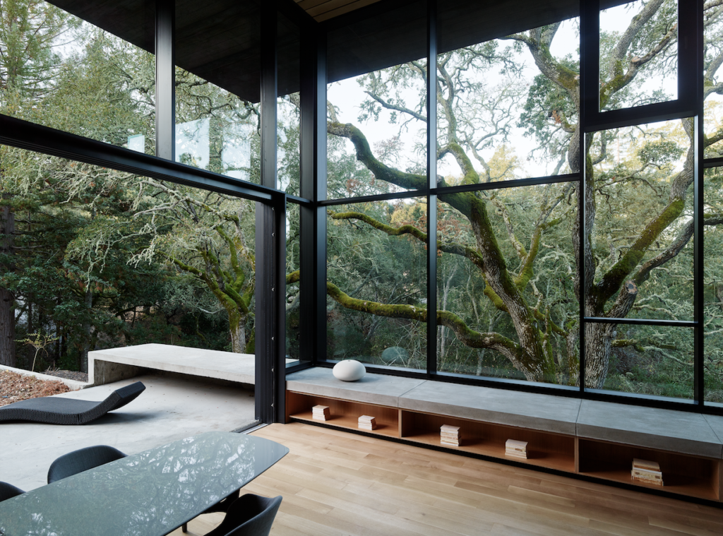 Los clientes, una pareja de científicos ambientalistas y sus dos hijos, se mudaron de Oakland Hills al clima veraniego de Orinda, ambas en el estado de California, Estados Unidos. Su compromiso con la sostenibilidad, incluida una solicitud de ser net-zero energy –esto traduce que la cantidad total de energía consumida durante el año debe equivaler a la energía renovable producida en el sitio–, fue evidente en el diseño, a cargo de la firma Faulkner Architects.