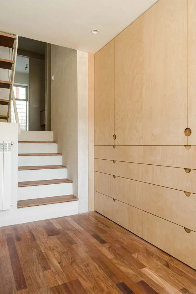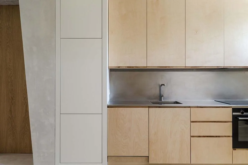 El diseño de la vivienda El objetivo de la intervención, por Jorge Borondo y Ana Petra Moriyón , es preservar la esencia del espacio original, manteniendo la solidez de su estructura de hormigón y combinándola con materiales que aportan textura, contraste y funcionalidad. Las paredes de ladrillo visto y la estructura de hormigón raspado conservan el carácter del espacio, mientras que la madera de abedul del mobiliario aporta calidez y precisión a los detalles.