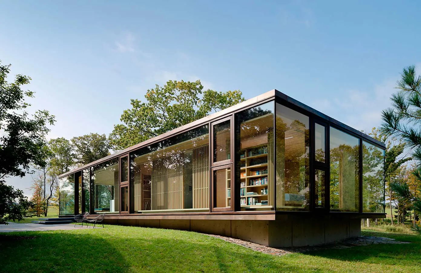Los ventanales de piso a techo de la fachada de esta casa en EE. UU., diseño de la firma Desai Chia Architecture, permiten que la naturaleza sea parte integral de la arquitectura. El tener vidrios con especificaciones como control de rayos UV genera una temperatura ideal al interior.