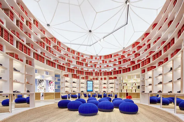 Concebido como un sistema ligero de madera laminada, la arquitectura soporta todas las necesidades de diseño de la tienda como: vitrinas, vestieres y almacenamiento. Dispuesto como un museo, su recorrido permite apreciar la colección como piezas únicas de diseño.
