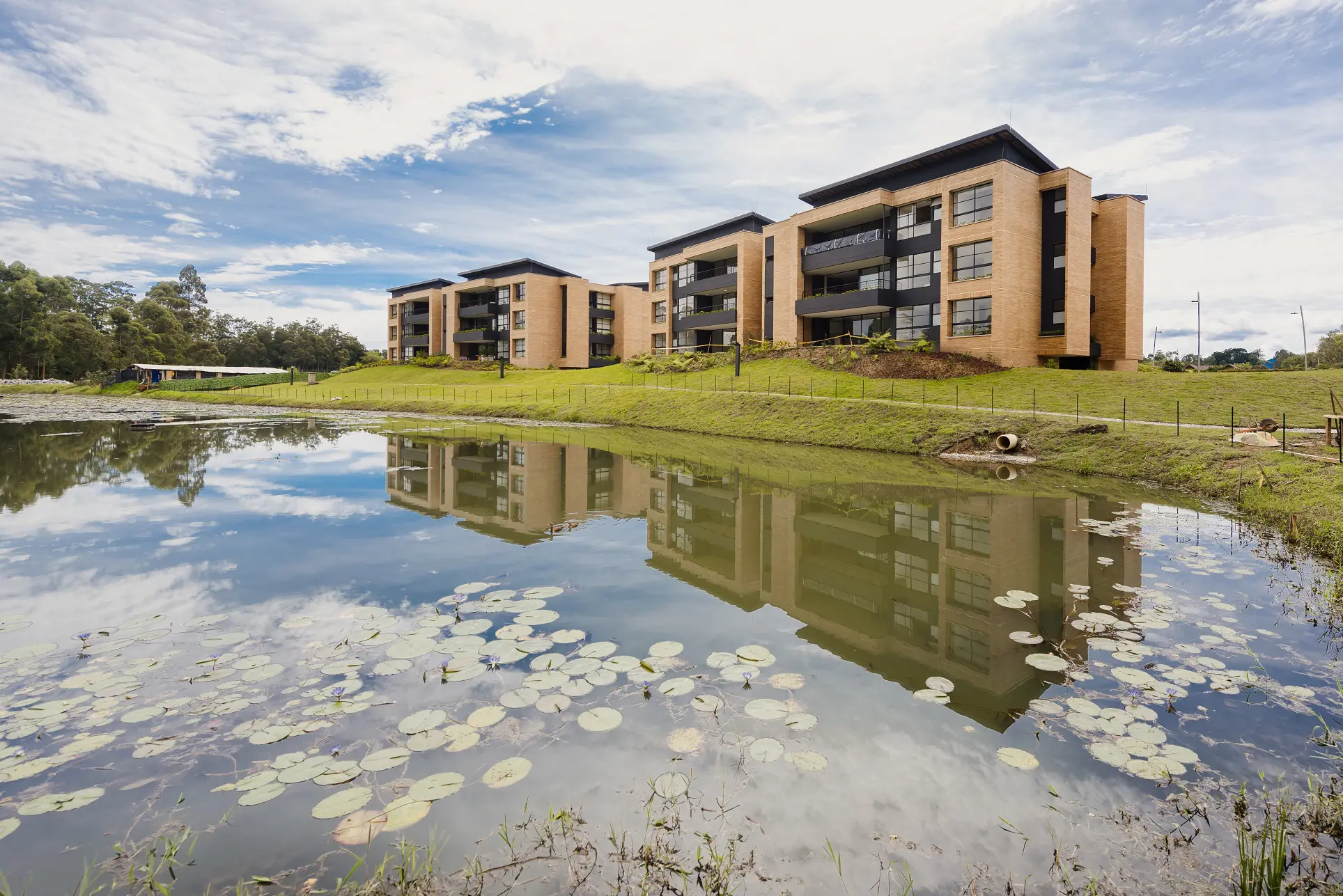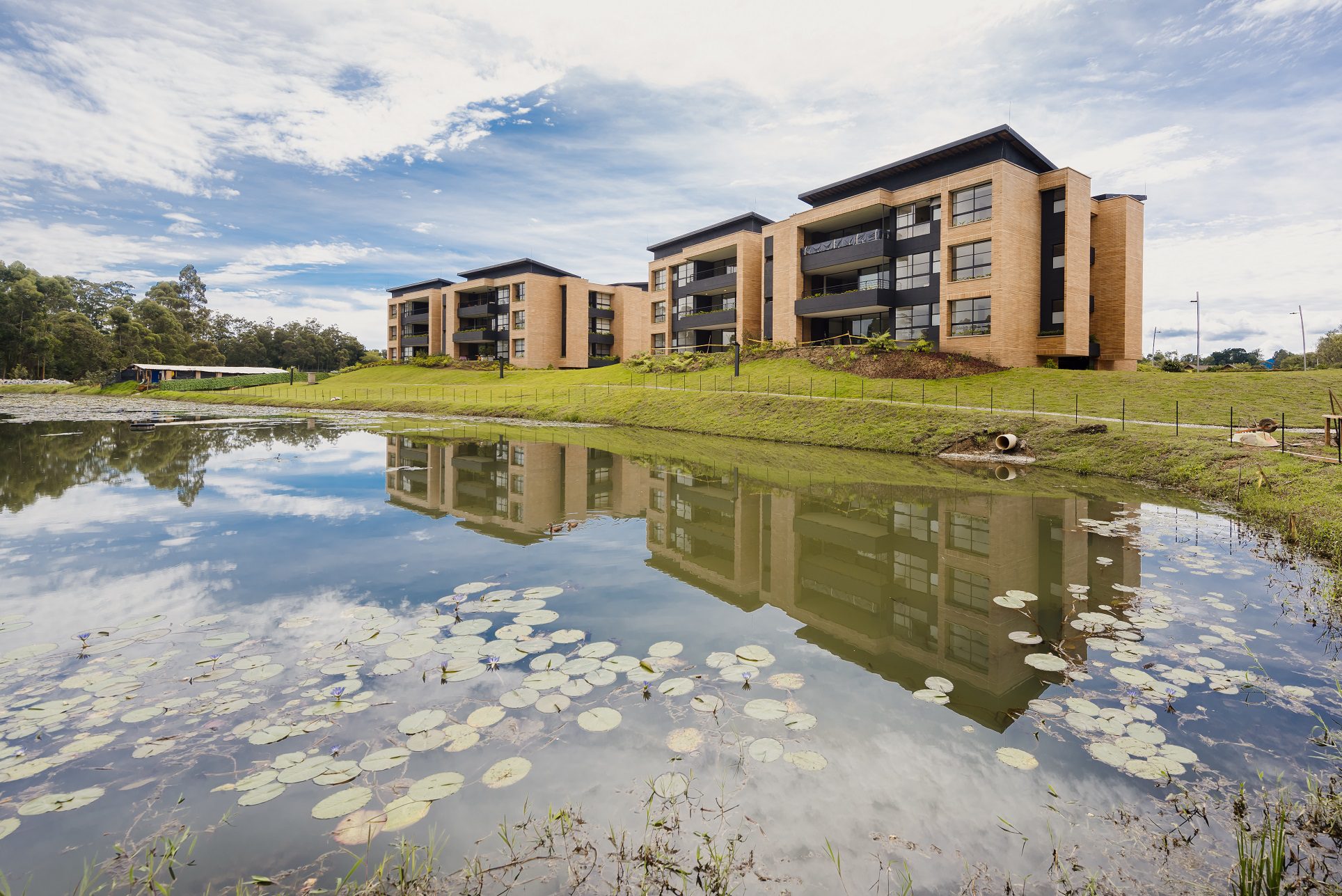 Haras Santa Lucía está implantado en lo que años atrás era una hacienda dedicada a la crianza de caballos purasangre. Un lugar con mucha tradición. Esta unidad cerrada, resguardada por árboles centenarios, está rodeada por tres lagos naturales y generosas zonas verdes. Sus áreas comunes recuerdan la arquitectura ecuestre, pues mantuvieron las pesebreras originales para adaptarlas como lugares para el esparcimiento, y sus apartamentos ofrecen un estilo contemporáneo que se integra con la naturaleza circundante por medio de amplios ventanales y terrazas.