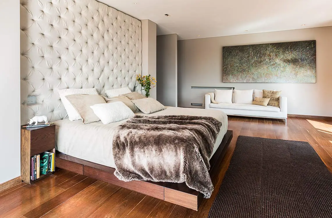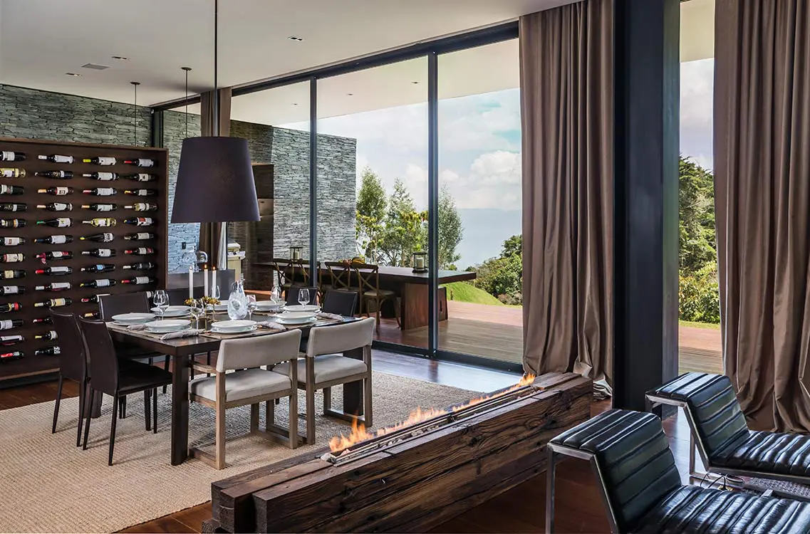 El otro remate de este volumen lo constituye la alcoba principal con terraza en “L”, enfrentada al poniente para recoger el calor durante la tarde. “Este terreno es muy frío por estar a 2.600 metros sobre el nivel del mar”, explica el arquitecto, quien para mejorar las condiciones climáticas se valió de chimeneas –como la ubicada en el primer piso entre el comedor y la sala–.