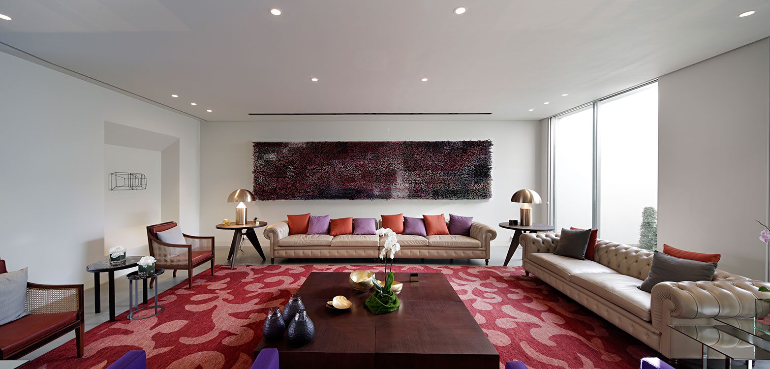 Una escultórica escalera, con un segundo lobby, es la encargada de toda la distribución de la casa. Ya sea por aquella o por el ascensor se accede al nivel superior, donde está el tesoro más preciado por el propietario: sus tres hijas. Al igual que en la planta inferior, cada una tiene su propia alcoba, un espacio generoso con vestidor y cuarto de baño.