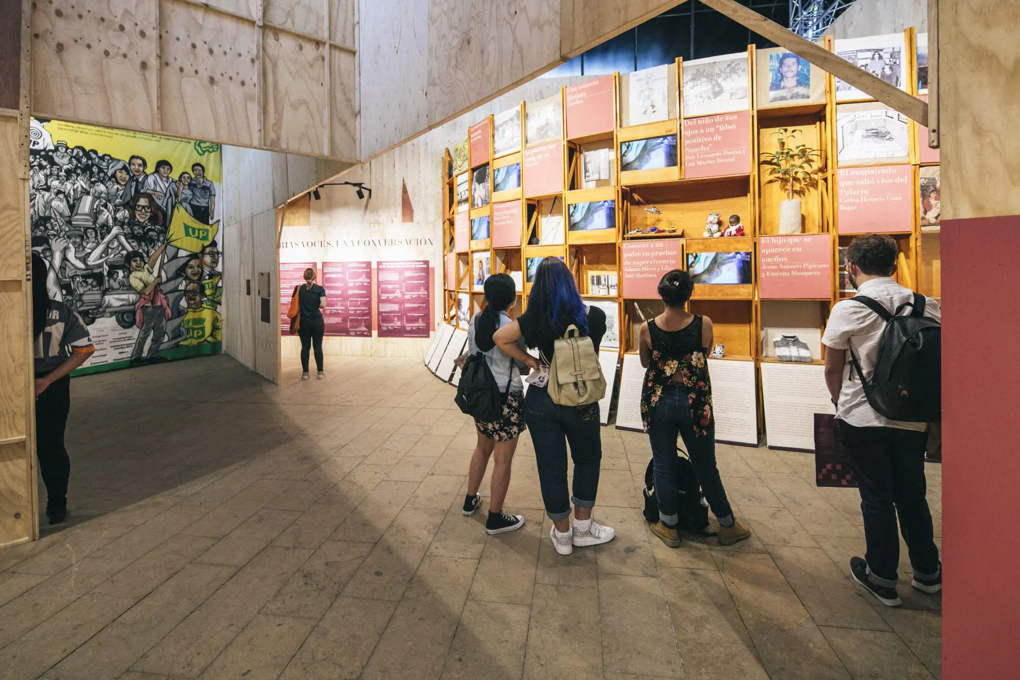 Voces para transformar a Colombia fue un adelanto de lo que será el Museo, que se empezó a construir desde el 2018 y abrirá sus puertas en 2020. Con videos, cómics, instalaciones, tejidos, pinturas, audios y textos, la exposición narra decenas de historias del conflicto armado a partir de tres ejes: la tierra, el agua y el cuerpo.