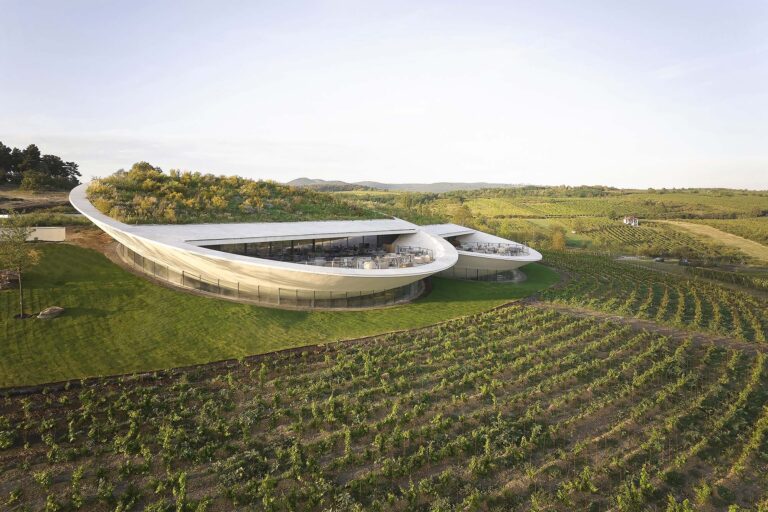 Este edificio tiene una forma delicada que flota sobre el paisaje