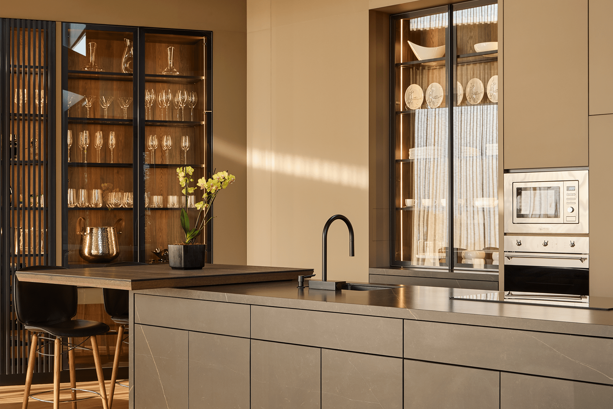Quizás el ambiente que más se ha transformado es la cocina. Tradicionalmente concebida para el servicio, separada y cerrada, hoy suele ser el centro de las zonas sociales, lo que implica que su diseño trasciende la condición utilitaria del simple acto de cocinar. Ha pasado de ser un lugar aislado a convertirse en un ámbito multifuncional, una estancia para la reunión y el disfrute.