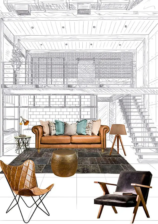 Industrial chic: Se destacan materiales con carácter y de alta durabilidad, como el cuero y el hierro, perfectos para amoblar ambientes donde predomina el uso del concreto a la vista, y donde los elementos estructurales de la construcción hacen parte de la propuesta decorativa.