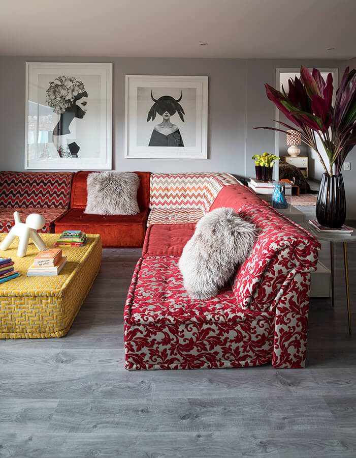 La diseñadora comenta que escogieron el gris “porque resalta el resto de tonos, y en la vida, siempre, cuanto más color, mejor”. Es así como, siguiendo esta filosofía, parten de una paleta neutra y tranquila de fondo, ofrecida por pisos y muros, para luego llenar de carácter el apartamento con una explosión cromática dada por alfombras, muebles, flores, obras de arte, papeles de colgadura y objetos decorativos.