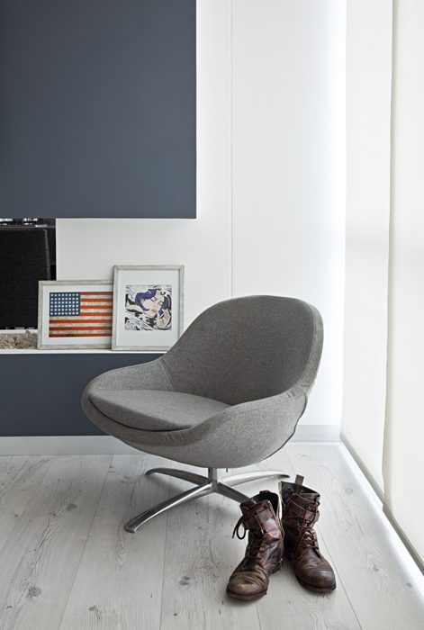 En el mobiliario buscó formas puristas sin ornamentaciones. El diseño escandinavo, incluso manifestado en su forma y colores de vestir, hace presencia en la totalidad del apartamento con tendencias minimalistas japonesas. A pesar de estar distanciadas geográficamente, el estilo de ambas partes convergen en la sencillez, la durabilidad y la funcionalidad.