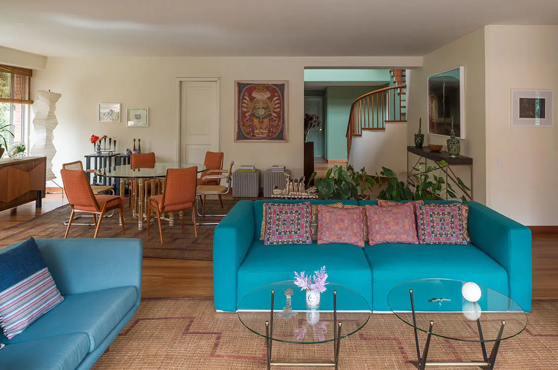 “Estoy satisfecha con lo que hemos logrado”, aunque asegura que aún es un trabajo en proceso. “Todo puede cambiar, la idea es que sea un lugar cálido y acogedor, que se adapte a nuestro estilo de vida. Para nosotros son importantes la sencillez y la practicidad, tener una casa donde no hay que preocuparse si algo está fuera de lugar, o se puede dañar”, concluye Yasmin, que no le teme a tomar riesgos a la hora de decorar, y está convencida de que si las piezas son buenas y tienen algún significado para uno, siempre habrá forma de utilizarlas. Por ejemplo, el sofá de los años cincuenta que heredó de la finca de sus abuelos en Rionegro, al que ni siquiera le cambió la tela, “es parte de mi historia, quiero que las cosas muestren su desgaste, eso les da personalidad. Las hace únicas”. Decoración ecléctica en Bogotá.