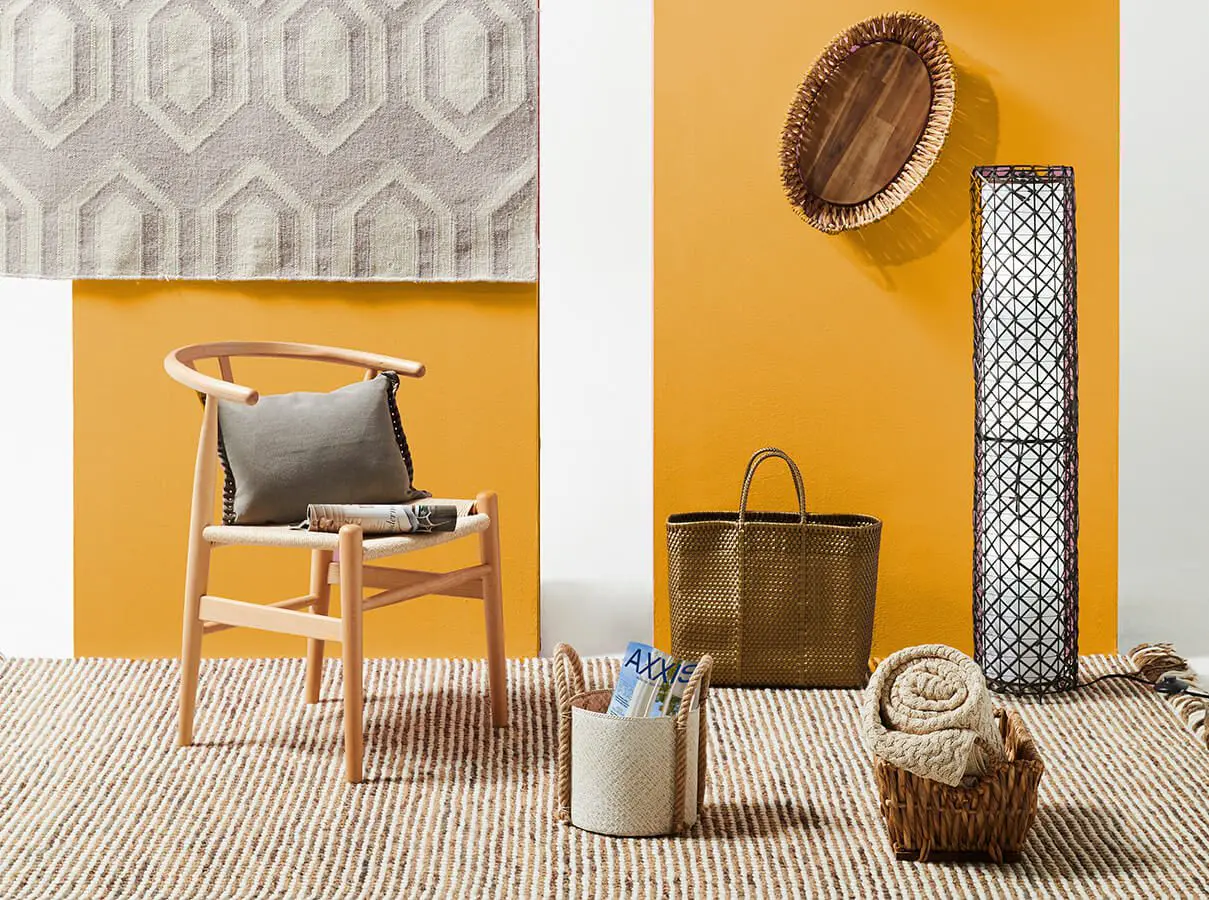 Tapete rectangular, ref. Cometa, de lana gris, de 1,20 x 1,80 m, $414.900, de Tugó.// Canasto redondo de fibra natural, $92.950, de Home Sentry. // Canasto ovalado de fibra natural, $109.950, de Home Sentry. // Lámpara de piso, ref. Basic redonda, $149.950, de Home Sentry // Manta tejida, ref. Ondas, de algodón beige, $199.900, de Tugó. // Funda para cojín, ref. Whip, de algodón y cuero gris, $57.900, de Tugó. // Silla de comedor, de madera natural, ref. Wishbone, $573.500, de Tugó. // Canasto rectangular hondo de fibra natural, $79.950, de Home Sentry. // Canasta, ref. Dili manijas, $49.900, de Habitat Store. // Tapete, ref. Wool Shag, de lana, viene en diferentes tamaños, desde 0,60 x 1,10 m hasta 2,50 x 3,50 m, $277.000 por m2, de Tejidos Lav.