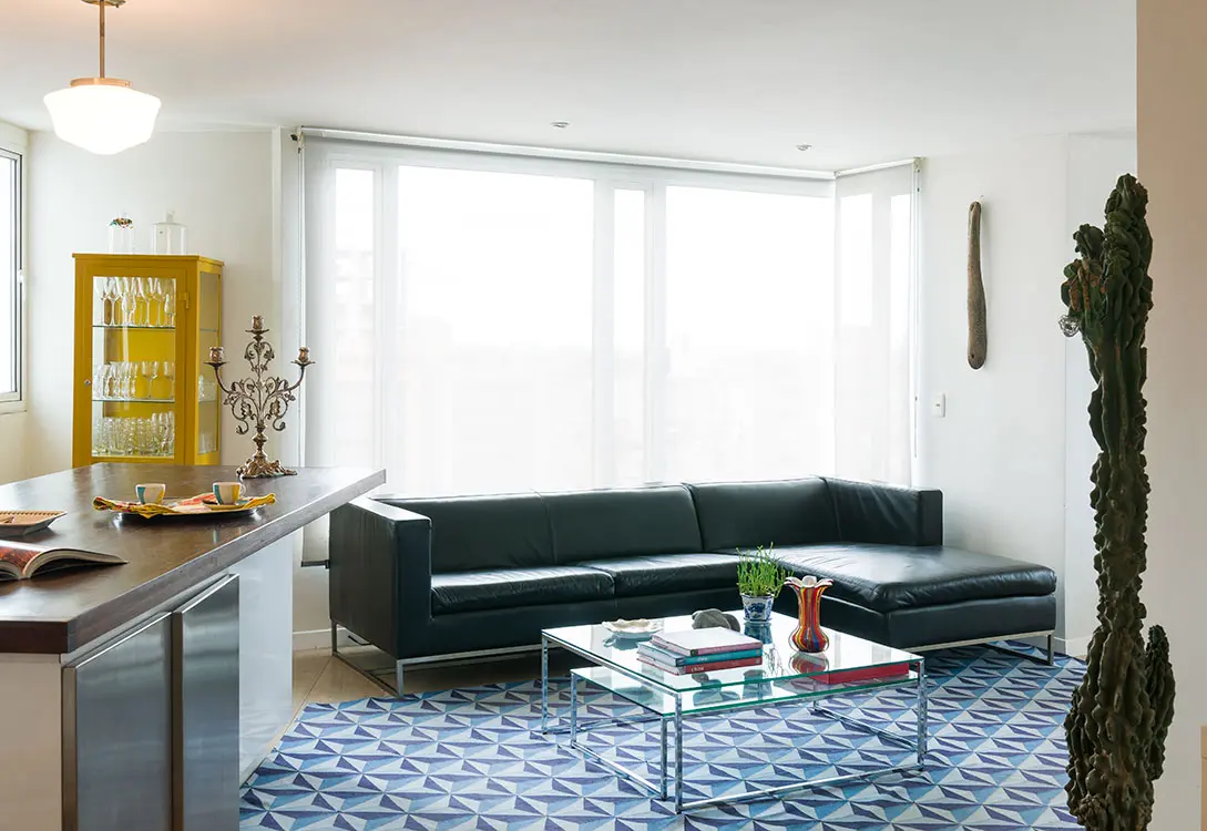Otro referente son las 14 lámparas de diversas épocas y estilos, ubicadas estratégicamente en el espacio, que aportan calidez y un sutil encanto a un apartamento que encontró en el camino de lo ecléctico su sello distintivo.