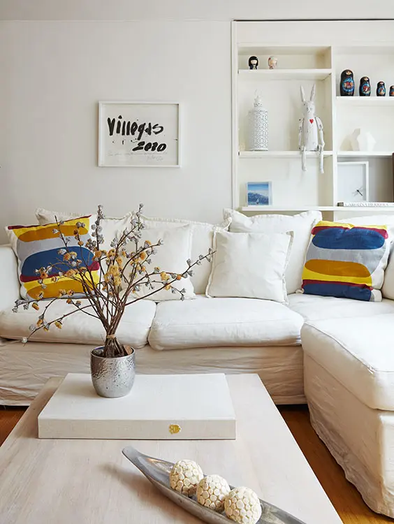 Este apartamento, ubicado en Bogotá y habitado por una pareja de artistas, el fotógrafo y ella diseñadora de modas, está compuesto por símbolos de sus historias familiares que colorean un fondo en el que el blanco y la luz natural son protagonistas.