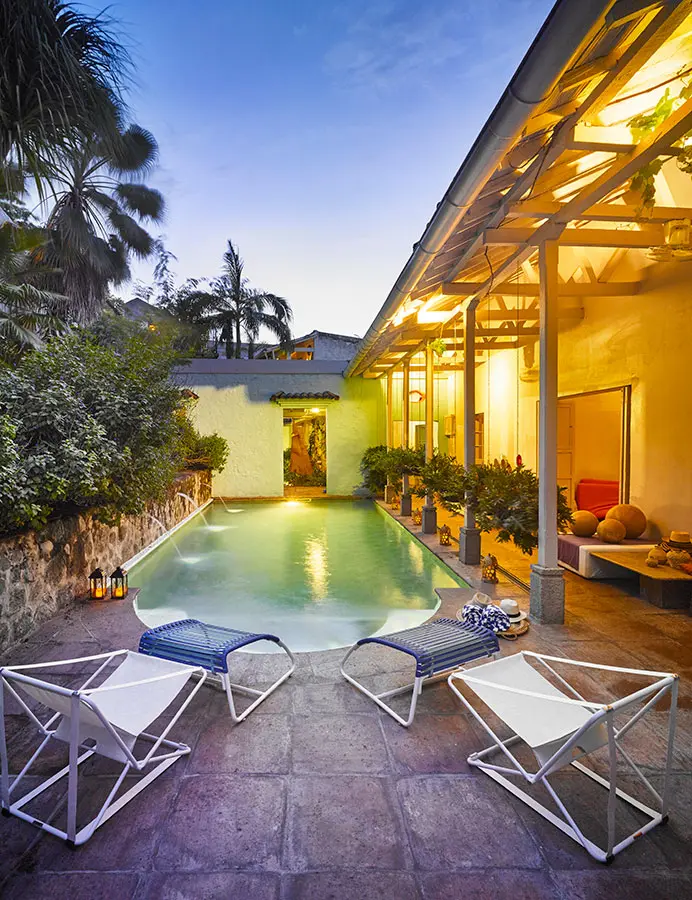 Esta casa de conservación en Honda, Tolima, que data del siglo XVIII, servía de hospedaje para José Celestino Mutis (1732-1808) durante la Real Expedición Botánica del Nuevo Reino de Granada. Con ese gran pasado como referente, el arquitecto y diseñador textil Jorge Lizarazo comenzó este proyecto. “Su interior era inerte, la vegetación y el paisajismo no resultaban importantes. Buscamos darle una conexión con su historia”.