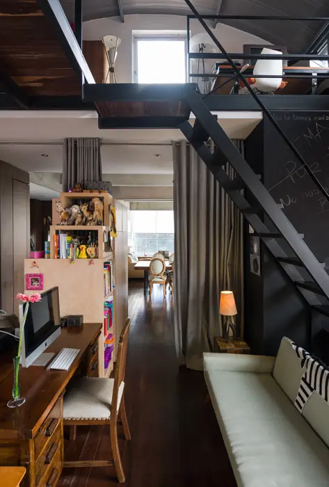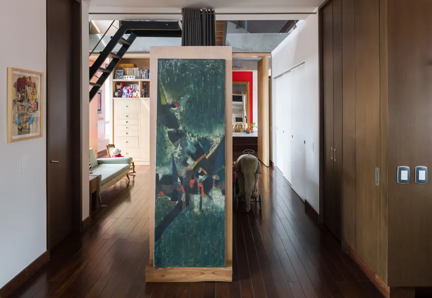 Además de aprovechar al máximo la iluminación del edificio por sus tres costados libres, la concepción de la casa tuvo tres principios adicionales: tener diferentes circuitos de recorrido, separar parcial o totalmente el área social de la privada y no perder los 3,50 metros de altura, dejando al descubierto las vigas y viguetas estructurales. “Me gusta recorrer caminos difíciles y reinterpretar lo ya establecido, eso por simple disciplina y como reflexión sobre los espacios y los elementos que lo conforman”, concluye Delgado.