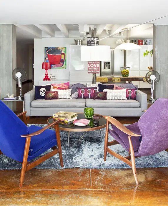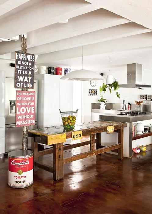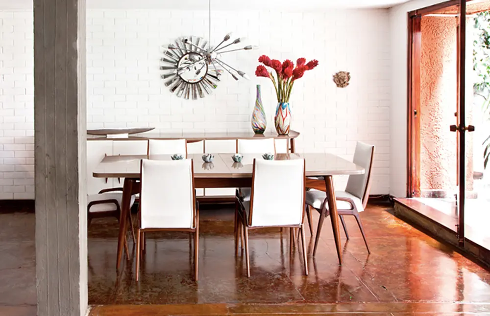 El estilo de los años cincuenta y el trabajo del artista Andy Warhol son la inspiración para este apartamento que contiene piezas de la época pero con ciertas variaciones. El comedor, las poltronas de la sala principal y una mecedora –todos de madera y con una capa de pintura que fue removida– son las adquisiciones que conservan el lineamiento de materiales con terminado natural en todo el entorno.