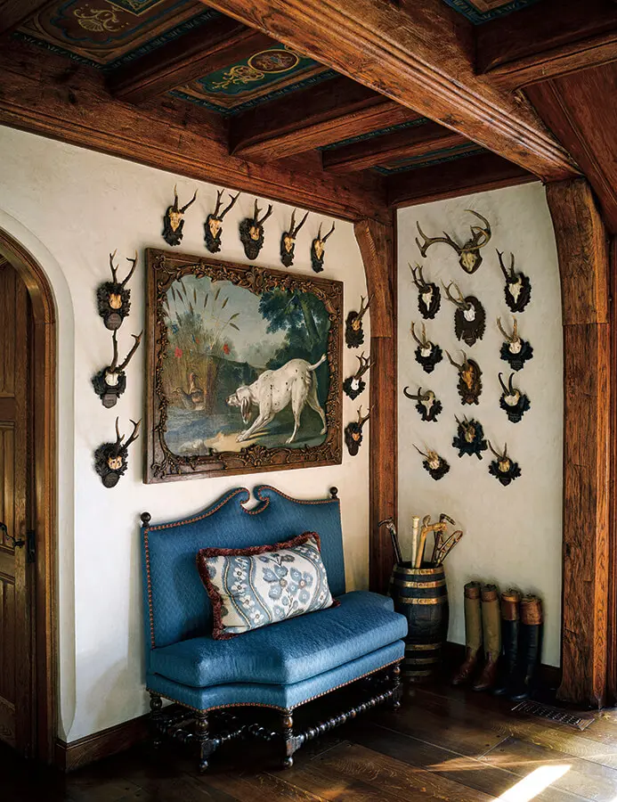 Siendo un coleccionista apasionado de arte y antigüedades, en toda la propiedad hay objetos sobresalientes. Still Life with a Hare, de Bernard DeBridat, ocupa un lugar destacado junto a los trofeos de caza Black Forest. En el comedor, la mesa del siglo XIX está puesta con platos vintage de la firma Royal Doulton y cubiertos de plata de Tiffany. El cuarto de desayuno tiene un tapete que perteneció a los duques de Windsor. Asimismo, hay muchas piezas de porcelana concernientes a los períodos de las dinastías Ming y Qing.