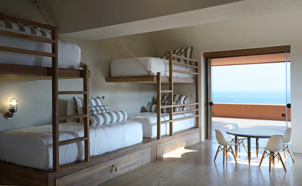 Con una playa del Pacífico mexicano como telón de fondo, esta casa de dos pisos pasó por un proceso de remodelación donde la gran mayoría del mobiliario fue creado milimétricamente para este proyecto.