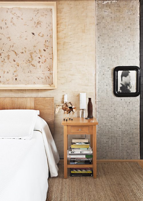 Con el mismo fin, los cuartos y las zonas sociales reciben la luz solar a través de las cortinas de cabuya, fibras de algodón, madera y mimbre del Chocó, de la firma Hechizoo, de Jorge Lizarazo, en el hall de entrada comienza un recorrido por objetos de varias épocas.