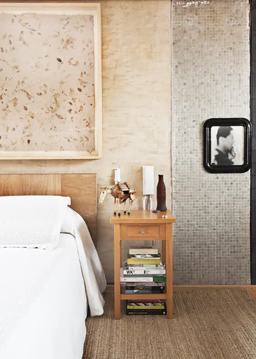 Sin embargo, nada de eso era lo suficientemente cautivante para conseguir la identidad natural que buscaba el artista, por eso, para generar la atmósfera de paraje vegetal, ubicó piedras de río y obsidianas (vidrios volcánicos) en diferentes puntos al igual que un bonsái de naranjo, de 40 años, comandando la sala y un jardín de varias plantas en el sitio más impredecible y que, además, tiene como remate visual una ducha transparente, creada con vidrio templado por el arquitecto Alejandro Castaño.