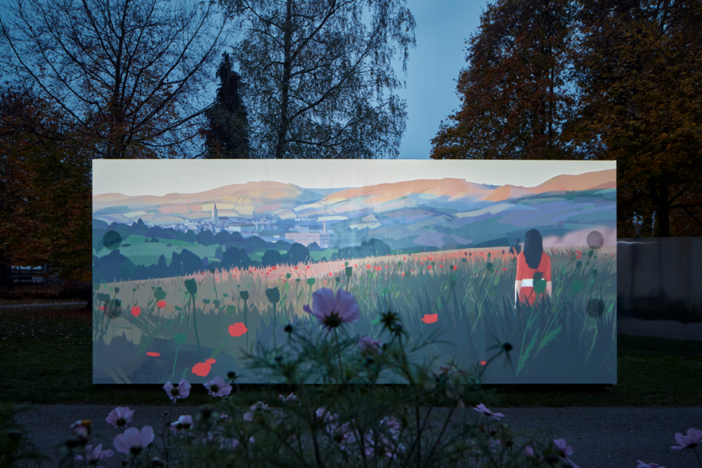 Además de esta parte narrativa, las otra de las instalaciones en el parque del castillo es una película inmersiva, una experiencia audiovisual que permite a los visitantes habitar momentos pasados de Zlín en varias épocas: estaciones, luces, en tiempos rurales, durante un incendio, cuando llegó el ferrocarril y también momentos presentes. Es una animación pintada fotograma a fotograma que trata cada fotograma de la película como una pintura.
